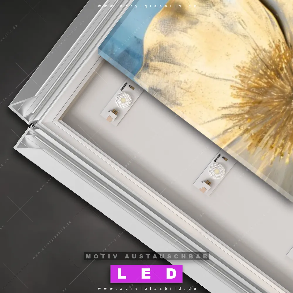 Also, warum noch zögern? Mach deine Wände mit einem Leuchtbild zum absoluten Hingucker und bestelle jetzt das Canvalight® DIA LED Acrylglasbild Klatschmohn in Gold. Deine Wände werden leuchten, und deine Freunde werden dank der wechselbaren Motive beeindruckt sein!