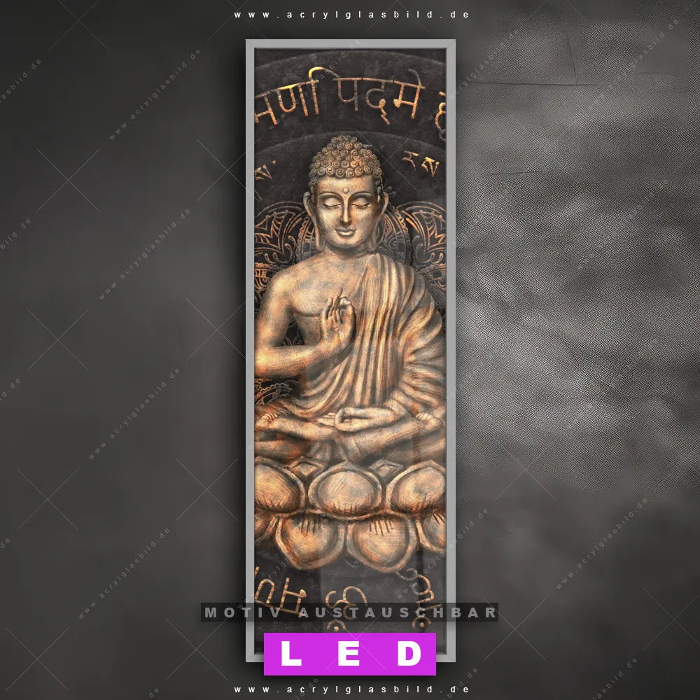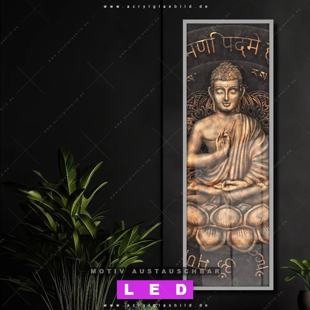 Bist du bereit, deine Wände mit einem dimmbaren LED Bild mit Fernbedienung und optionaler Farbtemperatursteuerung auf das nächste Level zu bringen? Unser Buddha - Feng Shui Canvalight® DIA LED Acrylglasbild ist genau das, was du brauchst! Das Wandbild mit LED Beleuchtung im Schmalen Format mit austauschbarer bedruckter Acrylglas-Scheibe Goldener Buddha No.2 bringt Licht und Stil in dein Zuhause – und das in null Komma nichts!