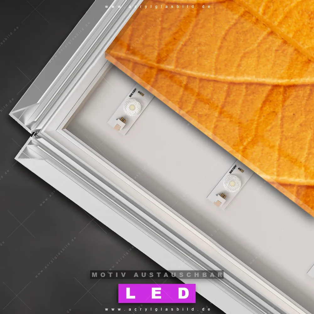 Also, warum noch zögern? Mach deine Wände mit einem Leuchtbild zum absoluten Hingucker und bestelle jetzt das Canvalight® DIA LED Acrylglasbild Nahaufnahme Blatt in gold. Deine Wände werden leuchten, und deine Freunde werden dank der wechselbaren Motive beeindruckt sein!