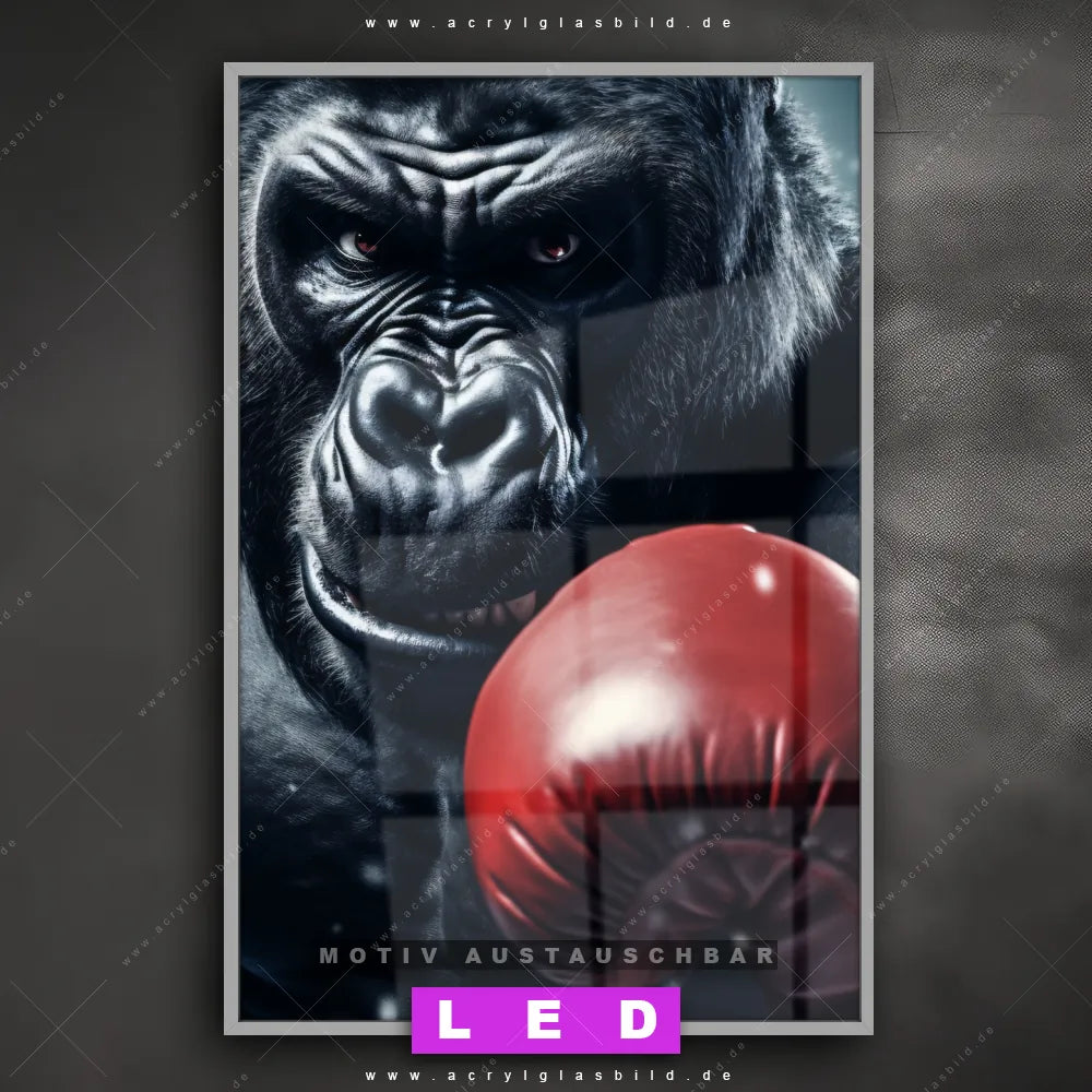 LED Acrylglasbild Canvalight® DIA | Gorilla mit roten Boxhandschuhen | Hochformat