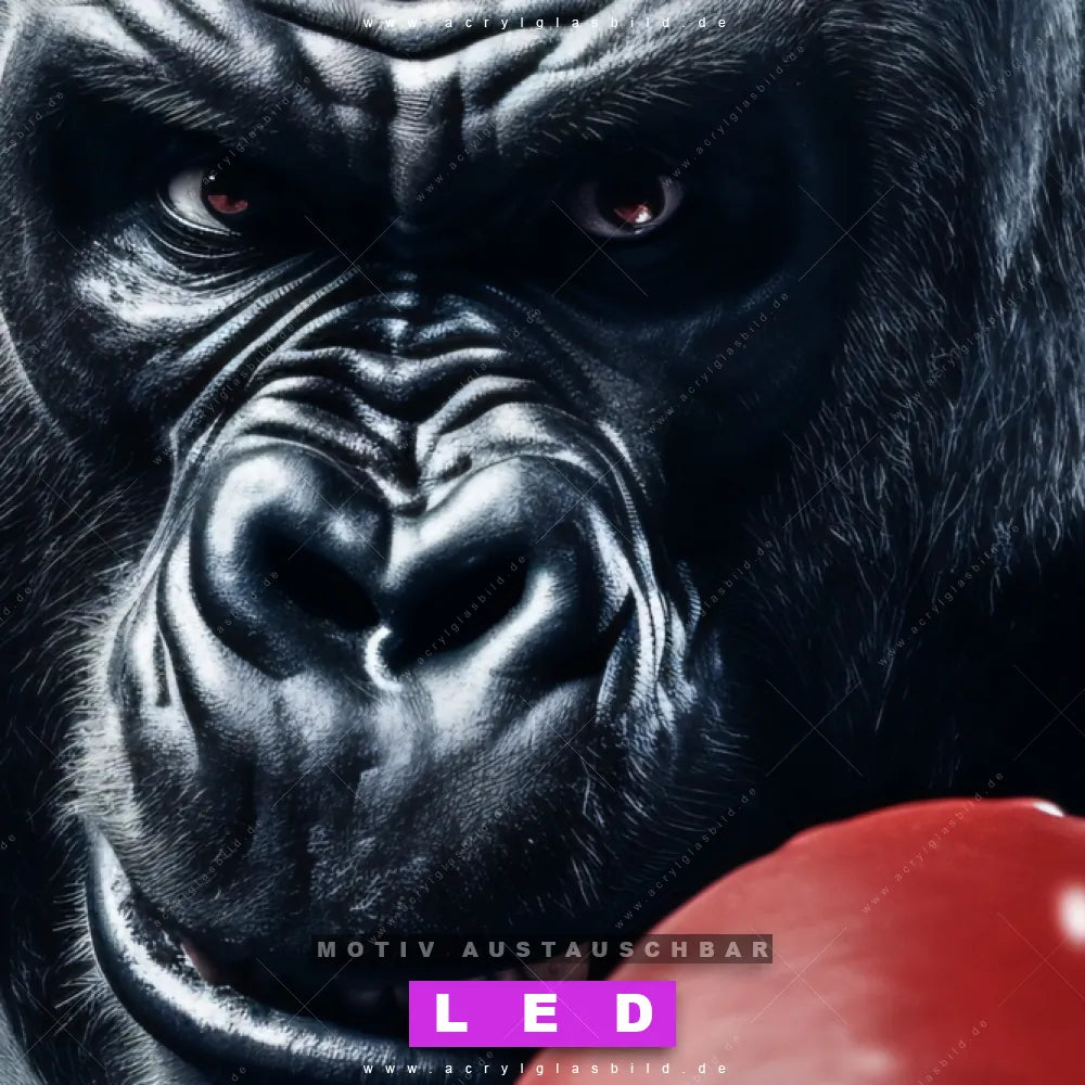 Du suchst nach einem Wandbild mit LED Beleuchtung als ultimativen Hingucker für deine Wände? Dann haben wir das perfekte dimmbare LED Bild mit Fernbedienung und optionaler Farbtemperatursteuerung für dich: unser abgefahrenes Tierwelt Canvalight® DIA LED Acrylglasbild! Mit dem LED Leuchtbild aus Acrylglas Gorilla mit roten Boxhandschuhen im Hochformat mit austauschbarer bedruckter Acrylglas-Scheibe bringst du nicht nur Licht, sondern auch ordentlich Stil in deine Bude.
