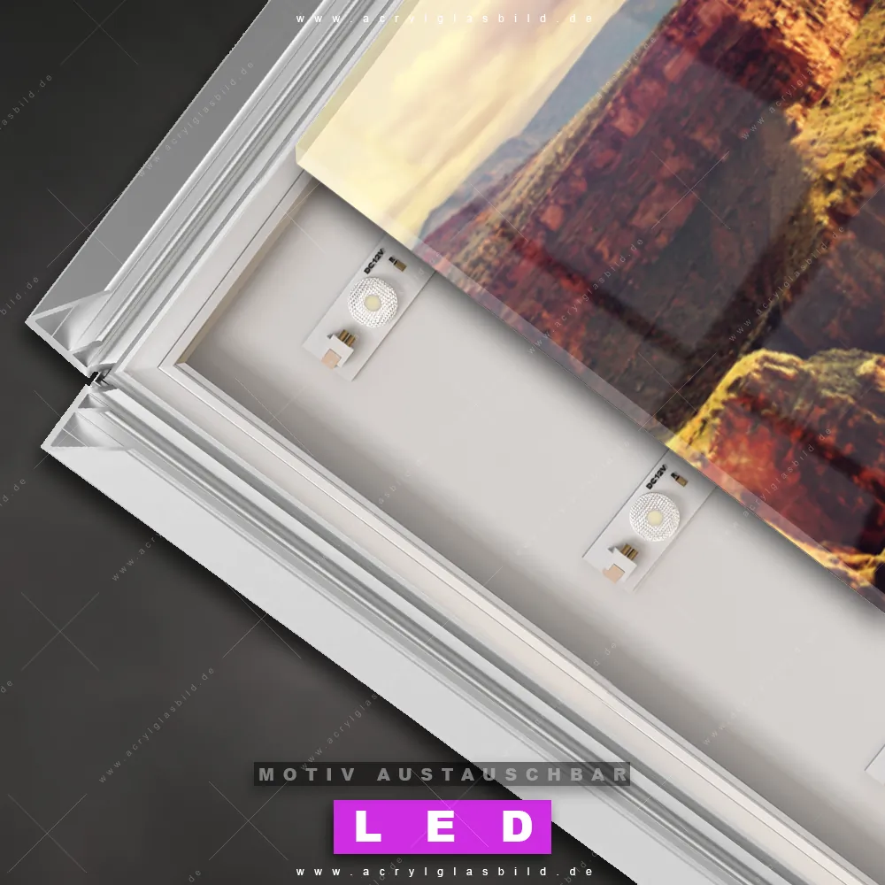 Deine Wände könnten dringend ein dimmbares LED Bild mit Fernbedienung und optionaler Farbtemperatursteuerung gebrauchen? Dann haben wir das perfekte Wandbild mit LED Beleuchtung für dich: unser mega-cooles Landschaften Canvalight® DIA LED Acrylglasbild! Mit unserem angesagten Leuchtbild aus Acrylglas im Panorama-Format und der austauschbaren bedruckten Acrylglas-Scheibe Grand Canyon Landschaft bringst du nicht nur Licht, sondern auch jede Menge Flair in deine Räume.