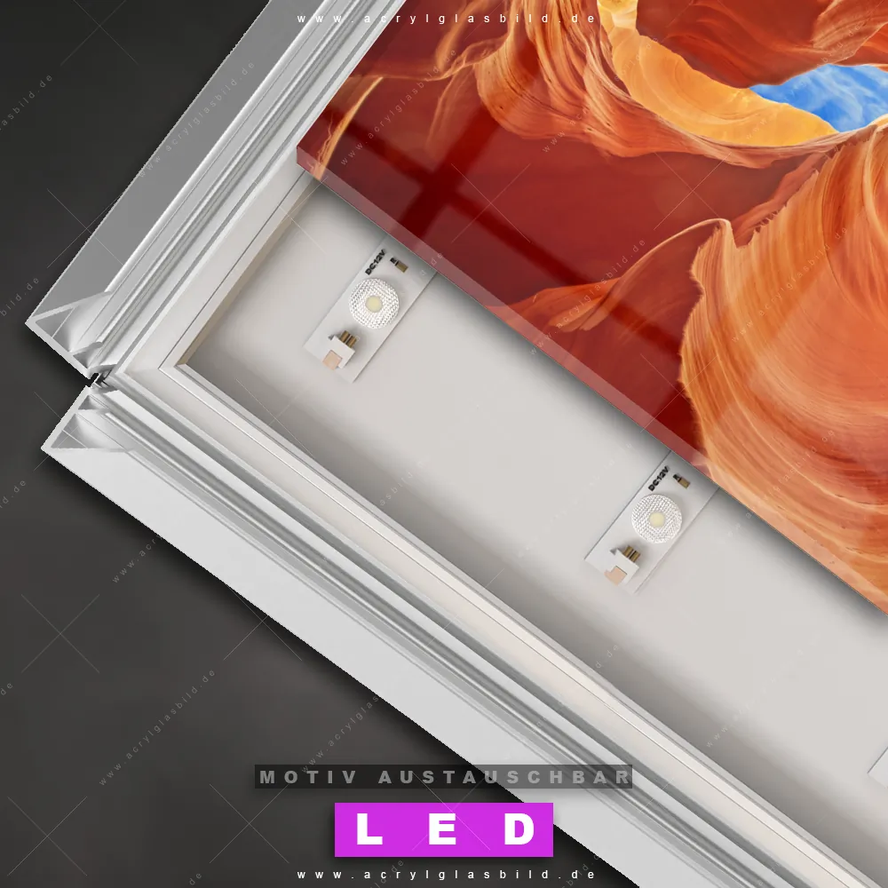 Also, worauf wartest du noch? Gib mit einem beleuchteten Wandbild mit wechselbarer Acrylglas-Scheibe deinen Wänden das gewisse Etwas und bestelle jetzt das LED Acrylglasbild Canvalight® DIA Canyon mit Himmelsblick – dein Zuhause wird es dir danken und deine Freunde werden dank der wechselbaren Motive erblassen!