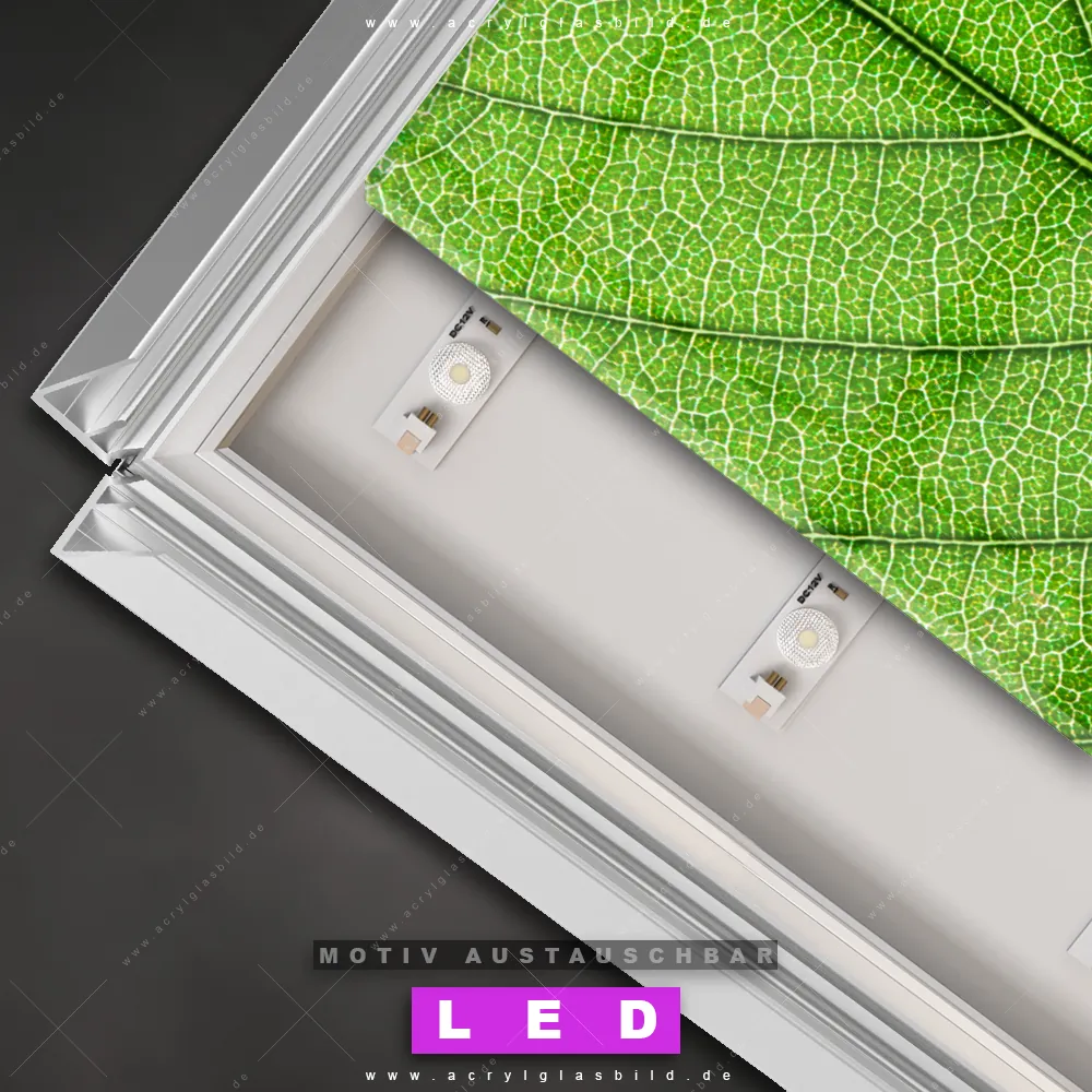 Na, worauf wartest du noch? Mach deine Wände zum Star der Show und bestelle jetzt das Canvalight® DIA LED Acrylglasbild Blattadern in grün. Deine Wände werden es dir danken und deine Freunde werden dank der wechselbaren Motive vor Neid platzen!