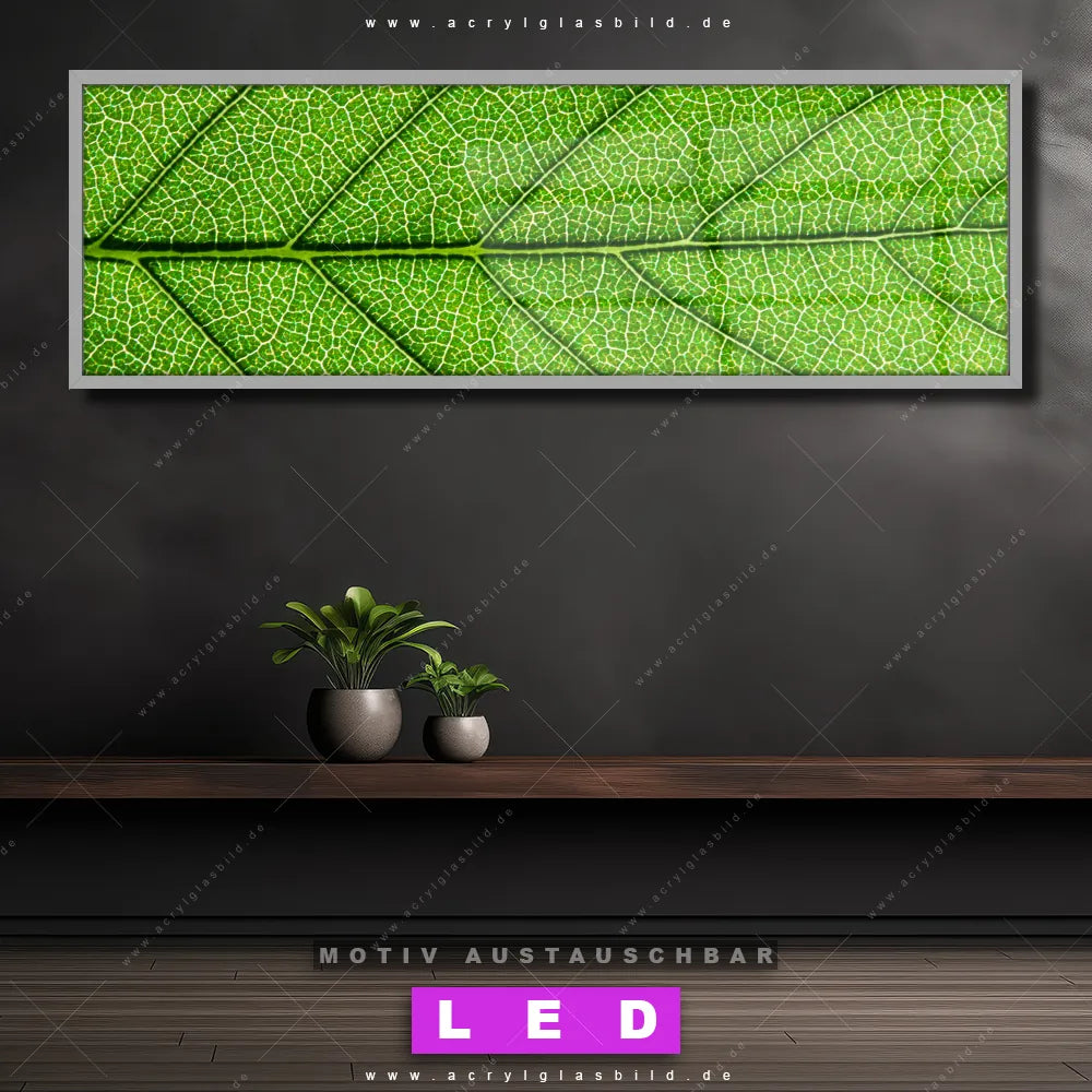 Deine Wände könnten dringend ein dimmbares LED Bild mit Fernbedienung und optionaler Farbtemperatursteuerung gebrauchen? Dann haben wir das perfekte Wandbild mit LED Beleuchtung für dich: unser mega-cooles Blumen - Botanik, Wald - Bäume Canvalight® DIA LED Acrylglasbild! Mit unserem angesagten Leuchtbild aus Acrylglas im Panorama-Format und der austauschbaren bedruckten Acrylglas-Scheibe Grüne Blattadern bringst du nicht nur Licht, sondern auch jede Menge Flair in deine Räume.