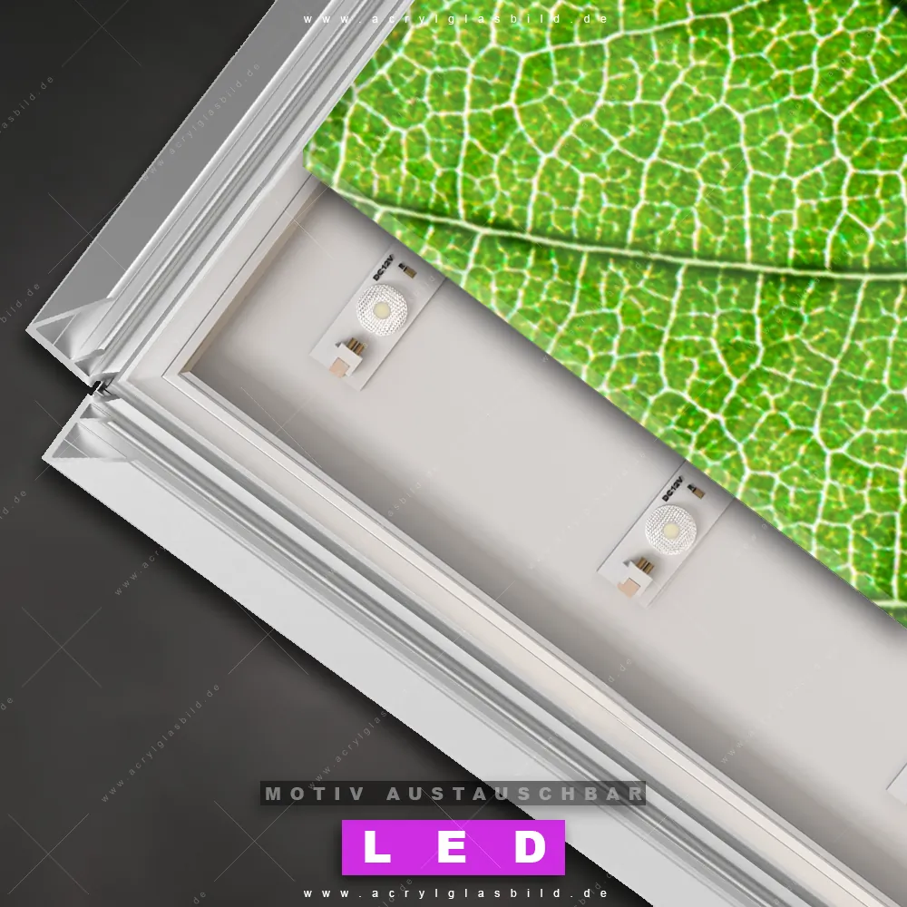 Also, warum noch zögern? Mach deine Wände mit einem Leuchtbild zum absoluten Hingucker und bestelle jetzt das Canvalight® DIA LED Acrylglasbild Blattadern in grün. Deine Wände werden leuchten, und deine Freunde werden dank der wechselbaren Motive beeindruckt sein!