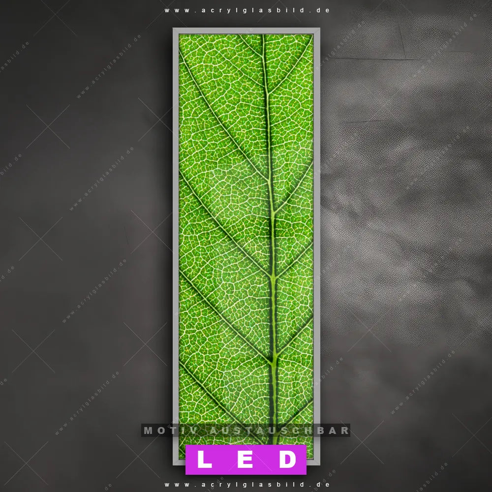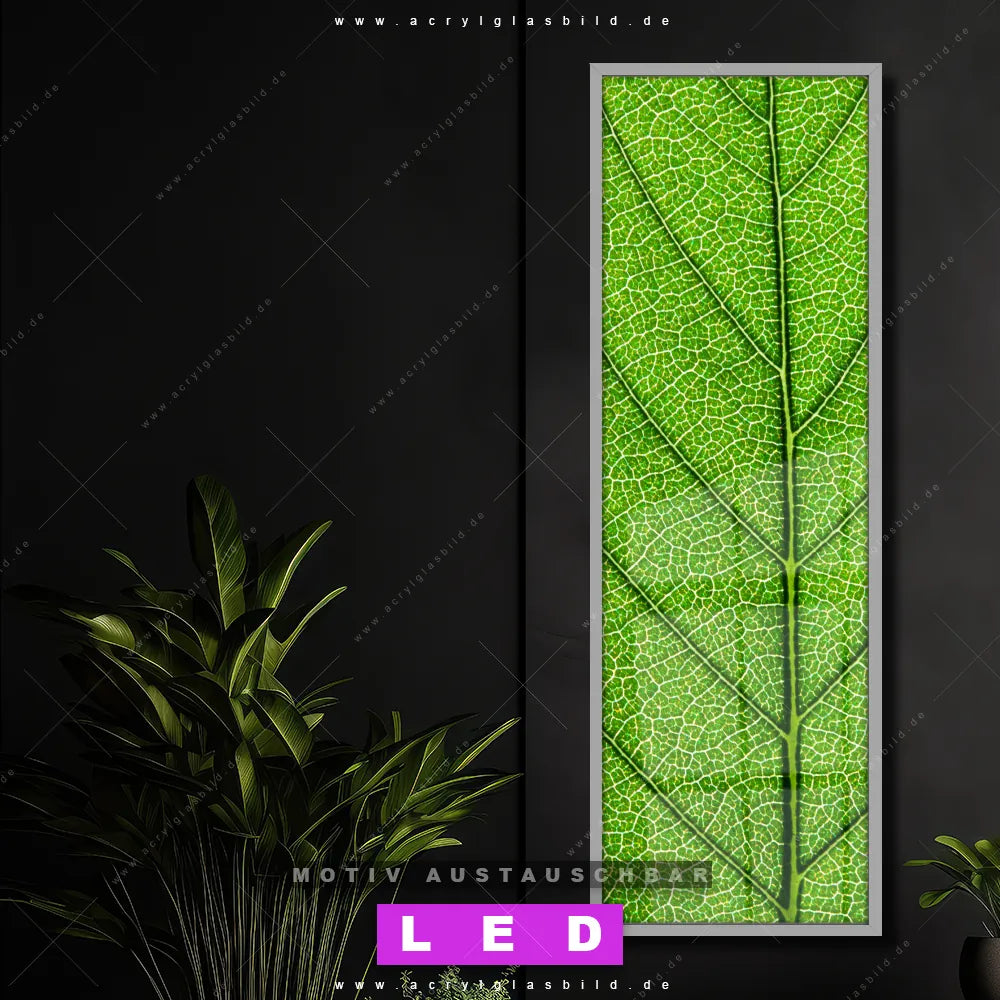 Bist du bereit, deine Wände mit einem dimmbaren LED Bild mit Fernbedienung und optionaler Farbtemperatursteuerung auf das nächste Level zu bringen? Unser Blumen - Botanik, Wald - Bäume Canvalight® DIA LED Acrylglasbild ist genau das, was du brauchst! Das Wandbild mit LED Beleuchtung im Schmalen Format mit austauschbarer bedruckter Acrylglas-Scheibe Grüne Blattadern bringt Licht und Stil in dein Zuhause – und das in null Komma nichts!