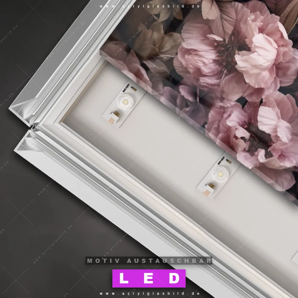 Du suchst nach einem Wandbild mit LED Beleuchtung als ultimativen Hingucker für deine Wände? Dann haben wir das perfekte dimmbare LED Bild mit Fernbedienung und optionaler Farbtemperatursteuerung für dich: unser abgefahrenes Blumen - Botanik Canvalight® DIA LED Acrylglasbild! Mit dem LED Leuchtbild aus Acrylglas Hellrosa Blumen im Hochformat mit austauschbarer bedruckter Acrylglas-Scheibe bringst du nicht nur Licht, sondern auch ordentlich Stil in deine Bude.