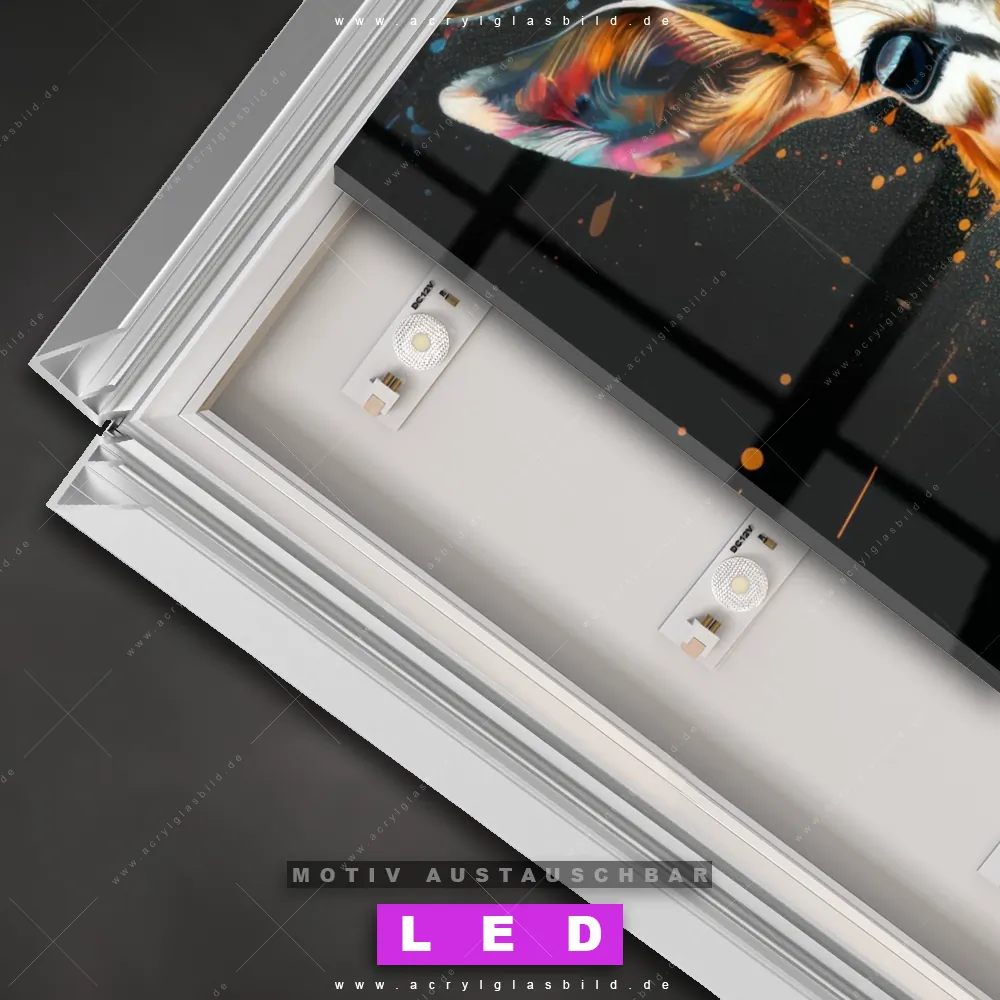 Mit unserem LED Acrylglasbild Canvalight® DIA Abstraktes Porträt eines Hirsches und seiner genialen LED-Ausleuchtung wirst du nie wieder im Dunkeln auf deinem Sofa herumtappen. Wenn du nach einem beleuchteten Wandbild aus Acrylglas mit Hirsch, Natur, Rotwild, Wald, Farbspritzer, Farbexplosion für Flur - Eingangsbereich, Wohnzimmer - Schlafzimmer suchst, ist unser LED Leuchtbild Rothirsch mit Farbspritzern in den beeindruckenden Motiv-Farben Schwarz, Bunt genau das richtige beleuchtete Wandbild für dich. Gestaltet im Modern Art, Pop Art, Abstrakt Stil, passt dieses LED Wandbild mit DIA-Klapprahmen und glänzender Front aus Acrylglas perfekt zu jedem Einrichtungsstil – sogar zu deinem chaotischen kreativen Durcheinander!