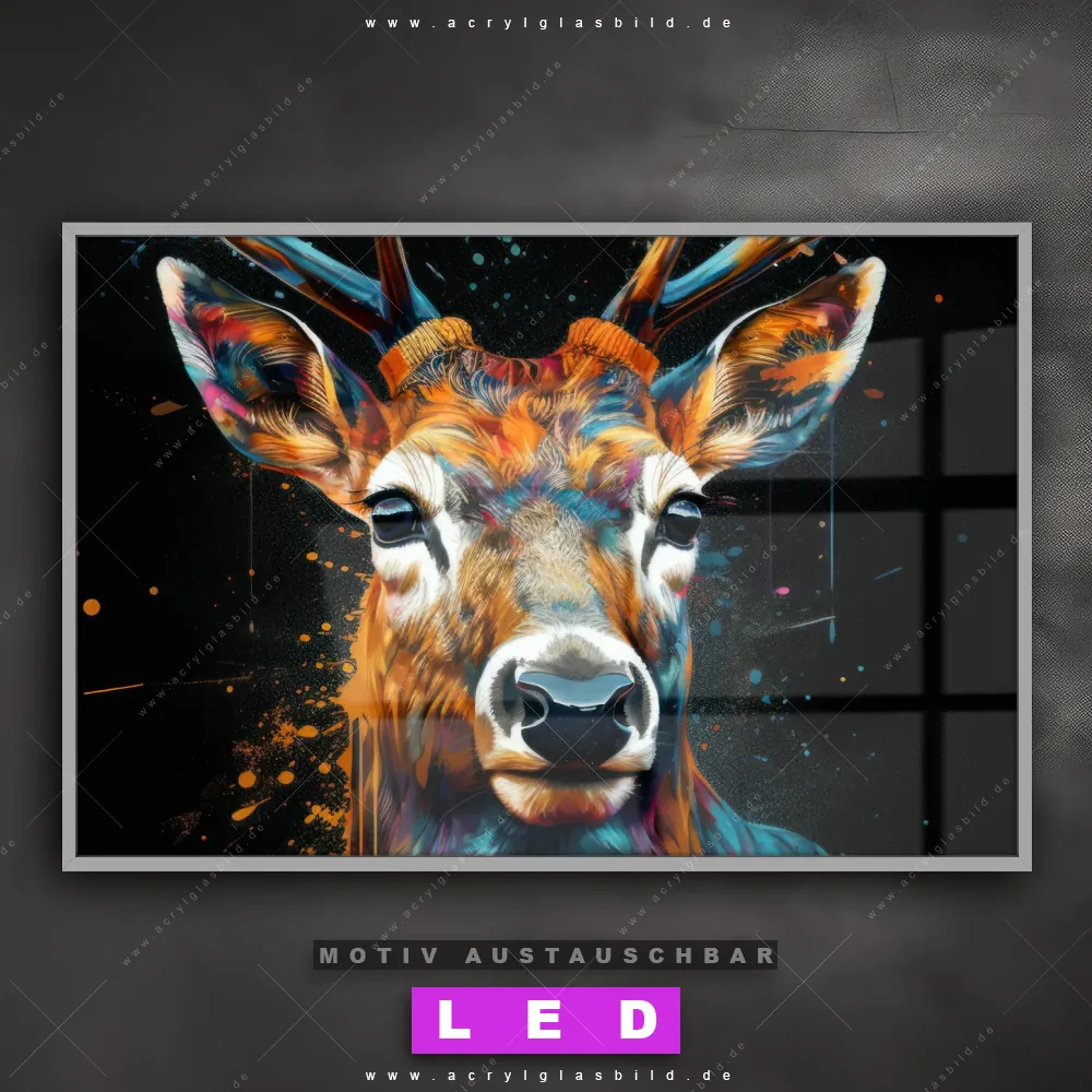 Du bist auf der Suche nach einem dimmbaren Tierwelt LED Bild mit Fernbedienung und optionaler Farbtemperatursteuerung? Dann haben wir hier genau das richtige Wandbild mit LED Beleuchtung für dich: Unser Canvalight® DIA LED Acrylglasbild Hirsch-Kopf im Querformat mit austauschbarer bedruckter Acrylglas-Scheibe. Dieses Leuchtbild bringt sofort Partybeleuchtung in deine Räume!