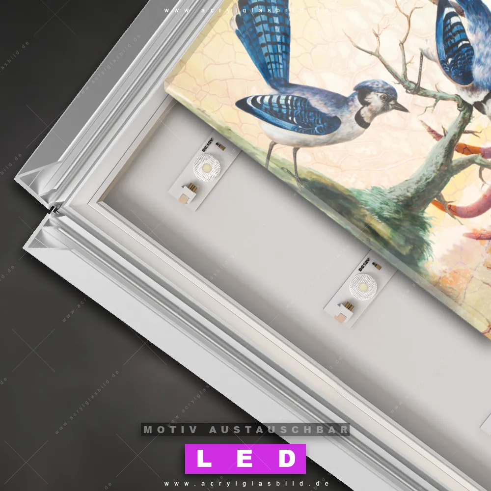 Du suchst nach einem Wandbild mit LED Beleuchtung als ultimativen Hingucker für deine Wände? Dann haben wir das perfekte dimmbare LED Bild mit Fernbedienung und optionaler Farbtemperatursteuerung für dich: unser abgefahrenes Tierwelt Canvalight® DIA LED Acrylglasbild! Mit dem LED Leuchtbild aus Acrylglas Hirsch & Vögel im Hochformat mit austauschbarer bedruckter Acrylglas-Scheibe bringst du nicht nur Licht, sondern auch ordentlich Stil in deine Bude.