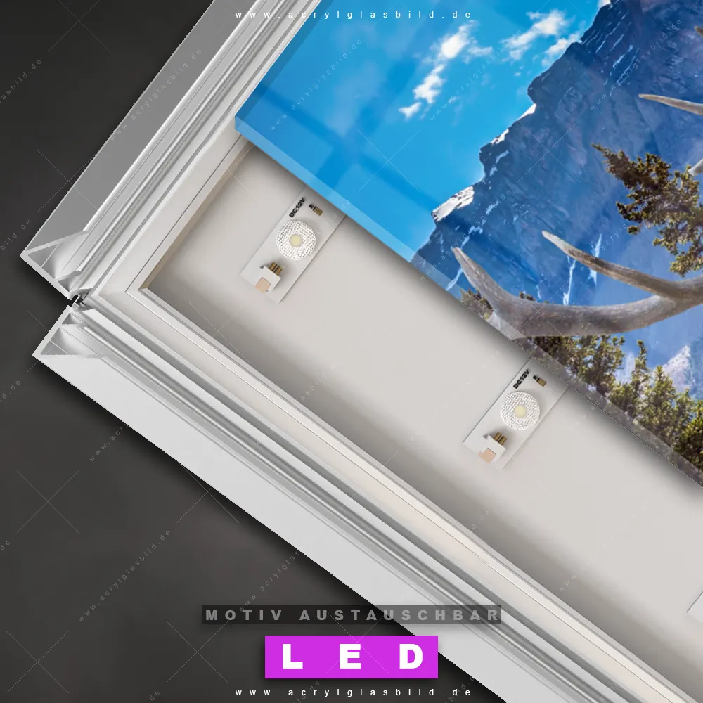 Na, worauf wartest du noch? Mach deine Wände zum Star der Show und bestelle jetzt das Canvalight® DIA LED Acrylglasbild Hirsch im Gebirge. Deine Wände werden es dir danken und deine Freunde werden dank der wechselbaren Motive vor Neid platzen!