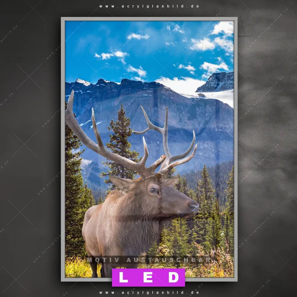 LED Acrylglasbild Canvalight® DIA | Hirsch vor Bergkulisse | Hochformat