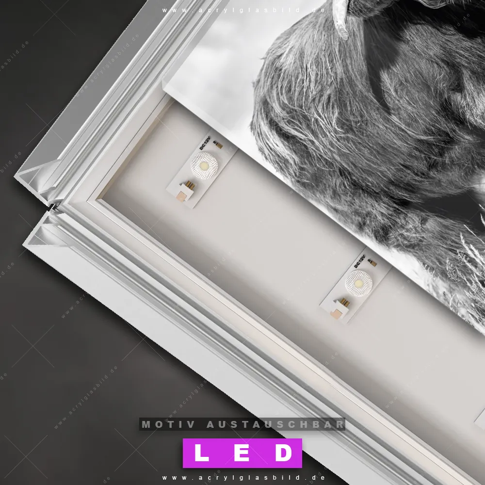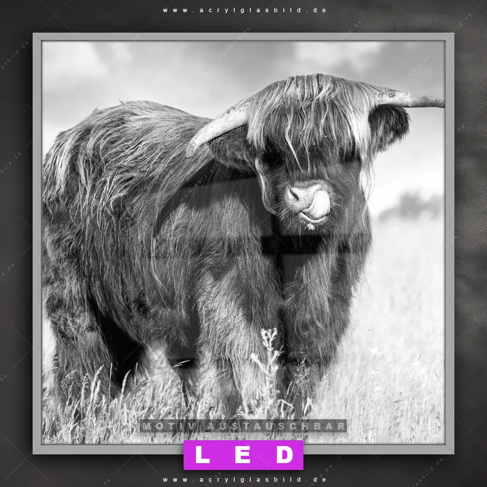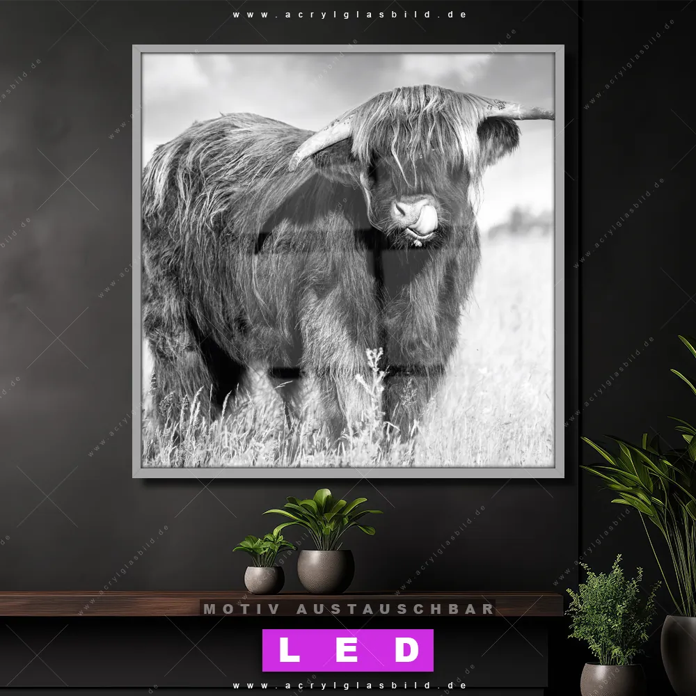 Also, worauf wartest du noch? Gib mit einem beleuchteten Wandbild mit wechselbarer Acrylglas-Scheibe deinen Wänden das gewisse Etwas und bestelle jetzt das LED Acrylglasbild Canvalight® DIA Highland Cattle auf Wiese – dein Zuhause wird es dir danken und deine Freunde werden dank der wechselbaren Motive erblassen!