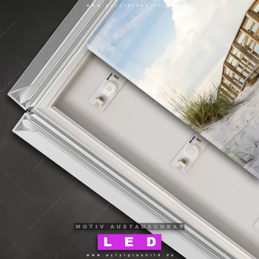 Also, worauf wartest du noch? Gib mit einem beleuchteten Wandbild mit wechselbarer Acrylglas-Scheibe deinen Wänden das gewisse Etwas und bestelle jetzt das LED Acrylglasbild Canvalight® DIA Steg am Ostseestrand – dein Zuhause wird es dir danken und deine Freunde werden dank der wechselbaren Motive erblassen!