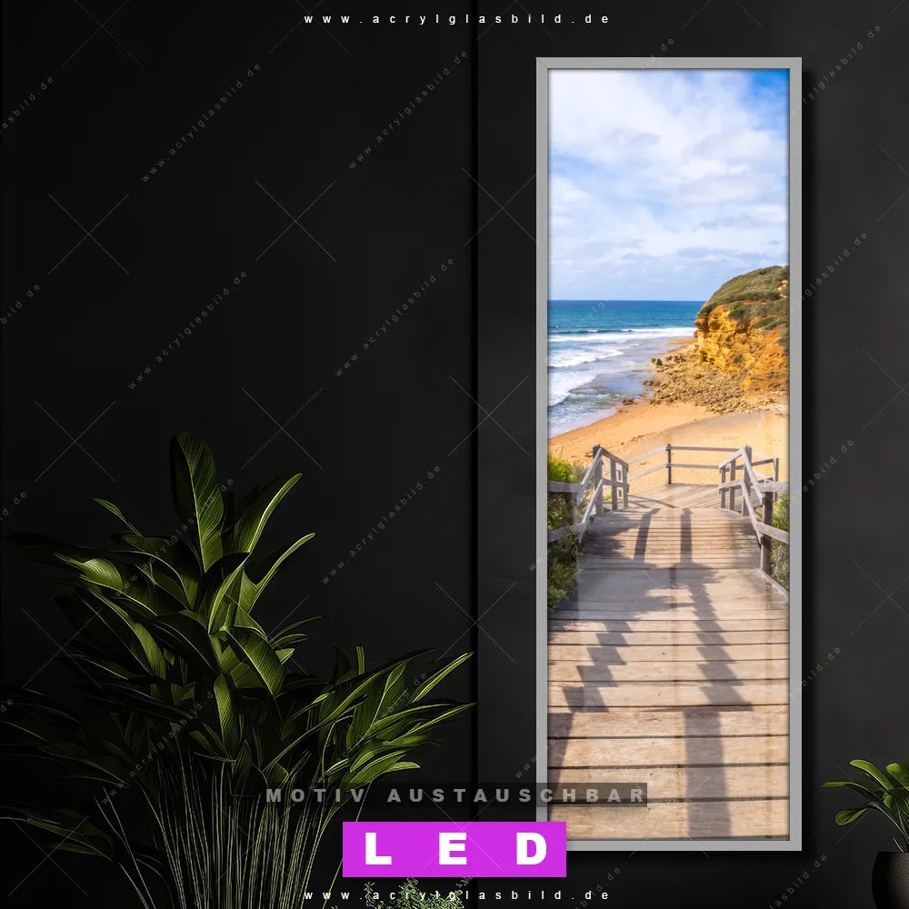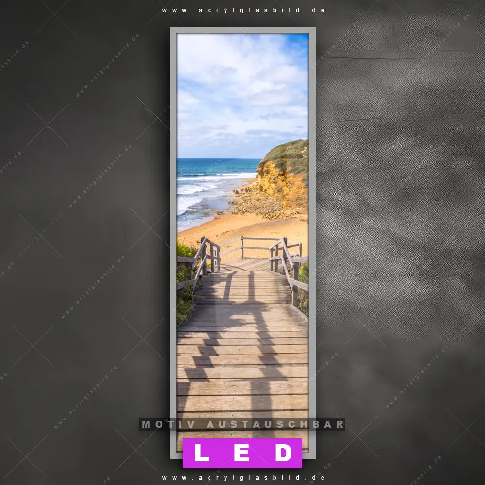 LED Acrylglasbild Canvalight® DIA | Holztreppe zum einsamen Strand | Schmal
