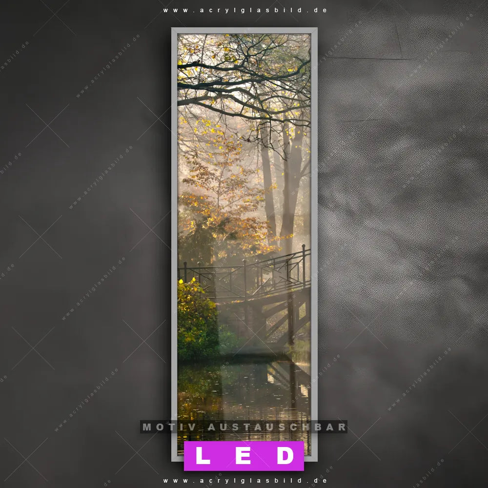 LED Acrylglasbild Canvalight® DIA | Idyllischer Wald mit Brücke | Schmal