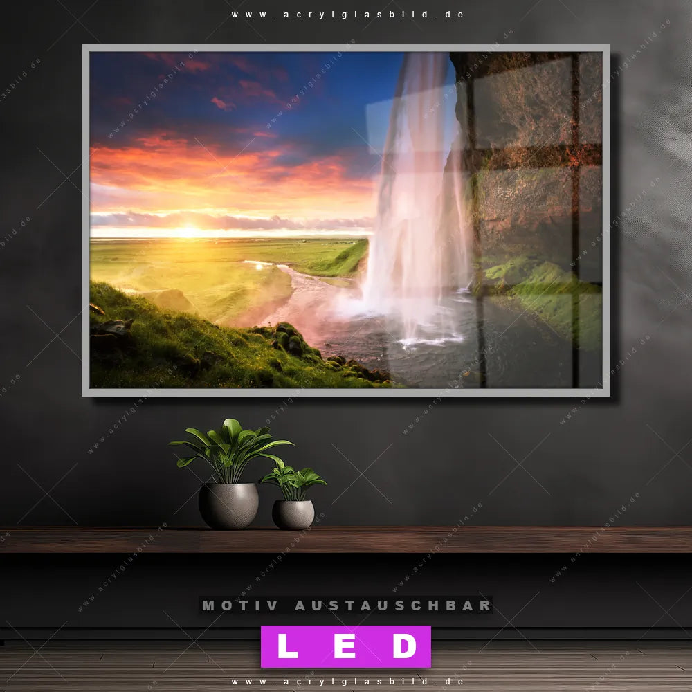 LED Acrylglasbild Canvalight® DIA | Isländischer Wasserfall | Querformat