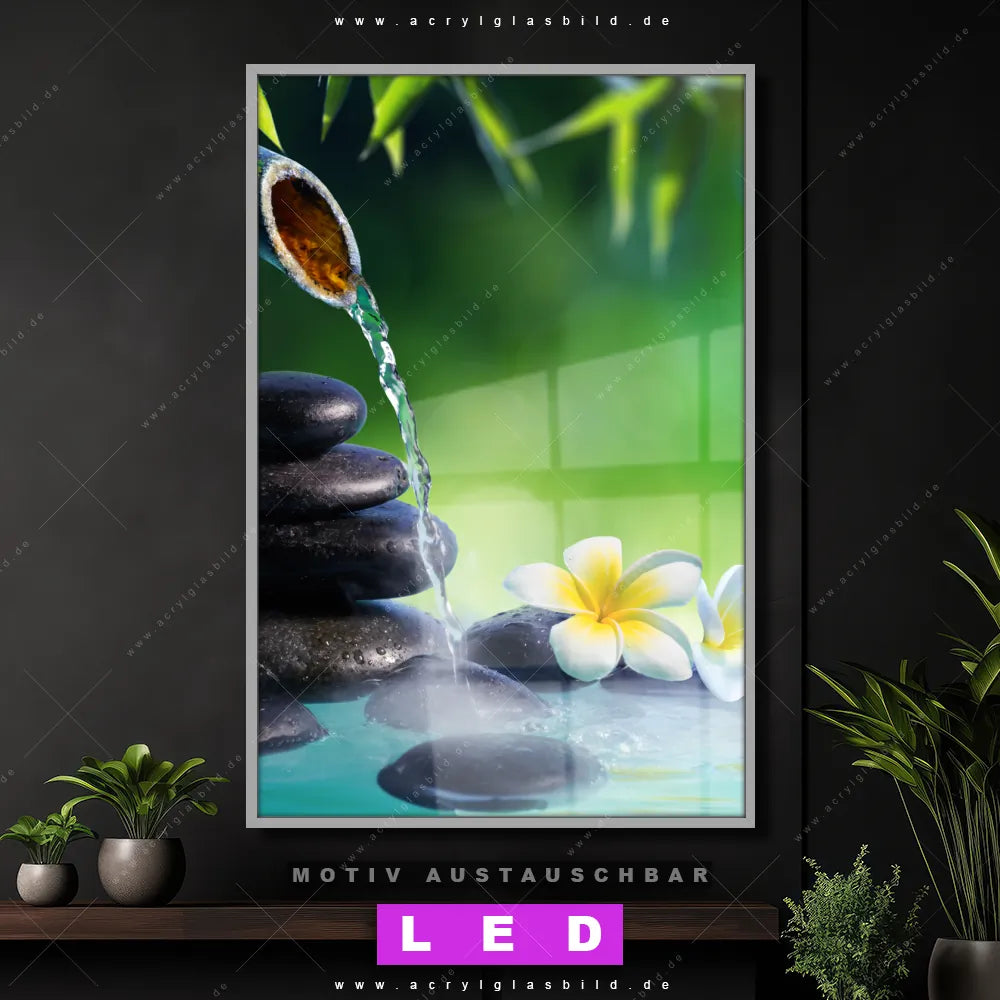 Du suchst nach einem Wandbild mit LED Beleuchtung als ultimativen Hingucker für deine Wände? Dann haben wir das perfekte dimmbare LED Bild mit Fernbedienung und optionaler Farbtemperatursteuerung für dich: unser abgefahrenes Buddha - Feng Shui, Blumen - Botanik Canvalight® DIA LED Acrylglasbild! Mit dem LED Leuchtbild aus Acrylglas Japanischer Brunnen im Hochformat mit austauschbarer bedruckter Acrylglas-Scheibe bringst du nicht nur Licht, sondern auch ordentlich Stil in deine Bude.