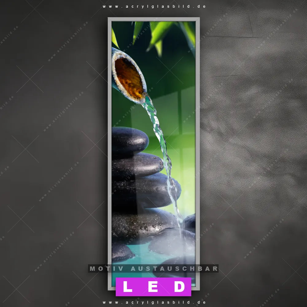 Vergiss dunkle Ecken und langweilige Wände in Arzt - Praxis, Wohnzimmer - Schlafzimmer, Friseur - Beauty! Mit unserem LED Acrylglasbild Canvalight® DIA Brunnen mit Zen-Steinen wirst du nie wieder im Dunkeln tappen. Suchst du nach einem beleuchteten Wandbild mit Buddhismus, Religion, Feng Shui, Zen, Meditation, Bambus, Zengarten, Steine, Zensteine, Blumen, Blüte, Lilie, Brunnen, Wasser? Dann ist unser Leuchtbild Zen-Steine im Wasser mit den strahlenden Motiv-Farben Grün, Hellgrün, Türkis, Schwarz, Weiss genau das richtige LED Bild für dich. Egal, ob dein Stil minimalistisch oder exotisch ist, dieses LED Leuchtbild im Mixed Media, Modern Art, Floral Stil mit DIA-Klapprahmen und glänzender Front aus Acrylglas passt perfekt zu jeder Einrichtung.