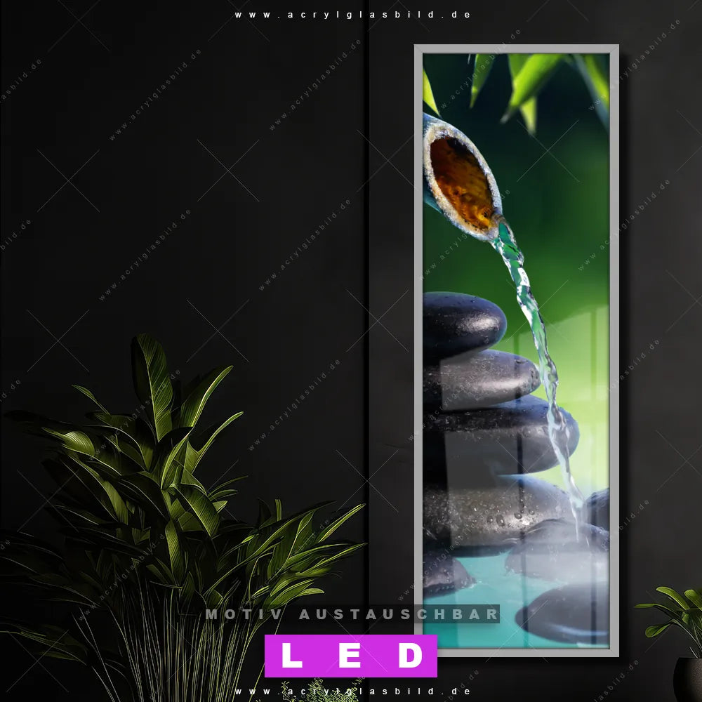 Bist du bereit, deine Wände mit einem dimmbaren LED Bild mit Fernbedienung und optionaler Farbtemperatursteuerung auf das nächste Level zu bringen? Unser Buddha - Feng Shui, Blumen - Botanik Canvalight® DIA LED Acrylglasbild ist genau das, was du brauchst! Das Wandbild mit LED Beleuchtung im Schmalen Format mit austauschbarer bedruckter Acrylglas-Scheibe Japanischer Brunnen bringt Licht und Stil in dein Zuhause – und das in null Komma nichts!
