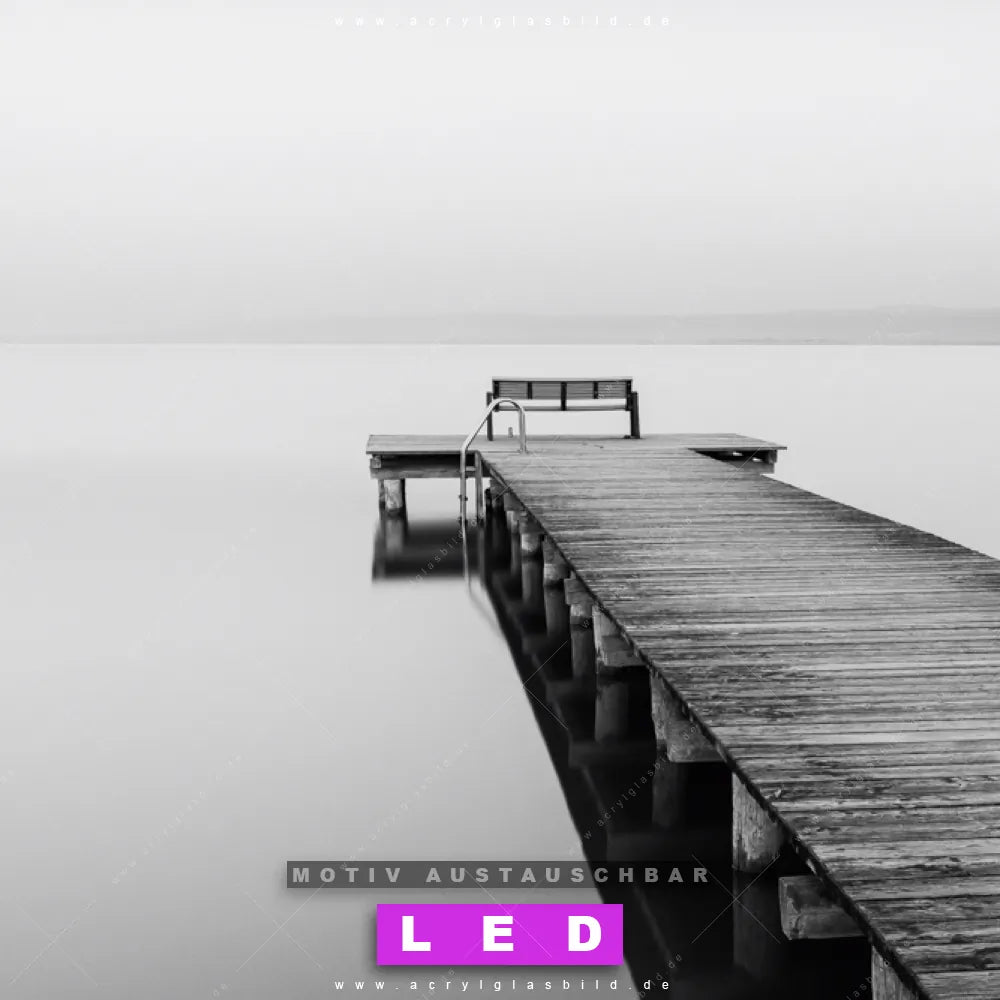 Also, warum noch zögern? Mach deine Wände mit einem Leuchtbild zum absoluten Hingucker und bestelle jetzt das Canvalight® DIA LED Acrylglasbild Holzsteg ins ruhige Meer. Deine Wände werden leuchten, und deine Freunde werden dank der wechselbaren Motive beeindruckt sein!