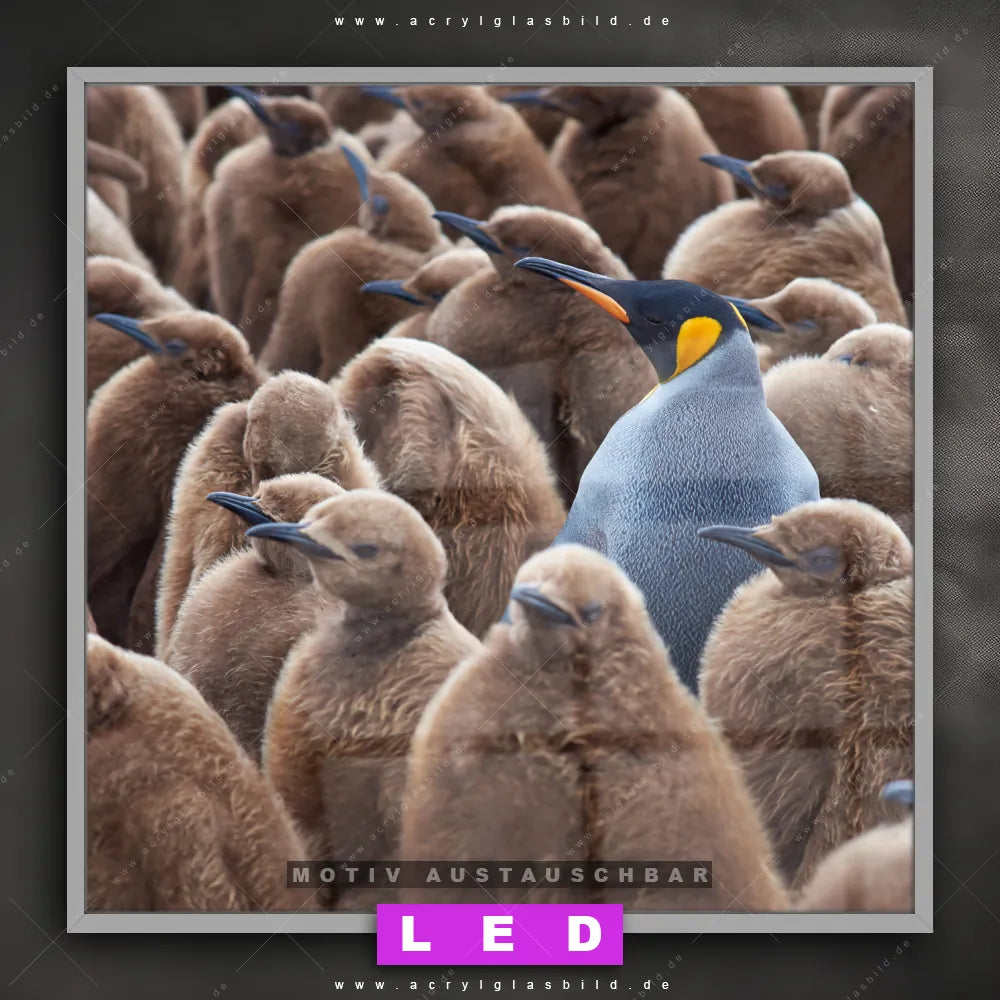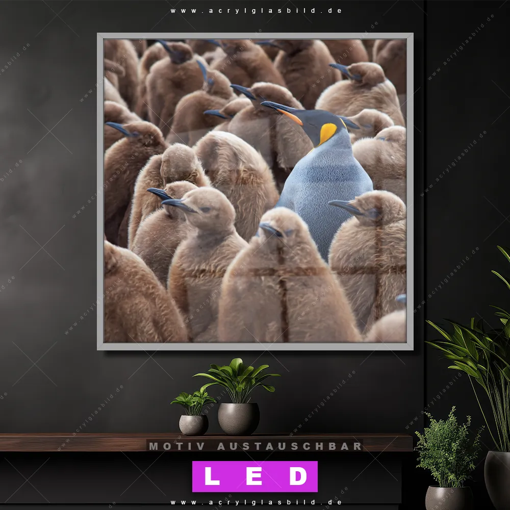 Bist du bereit, deine Wände mit einem dimmbaren LED Bild mit Fernbedienung und optionaler Farbtemperatursteuerung zum Leuchten zu bringen? Wir haben das ultimative Tierwelt LED Acrylglasbild Canvalight® DIA für dich! Unser LED Wandbild aus Acrylglas Königspinguine im Quadratischen Format mit austauschbarer bedruckter Acrylglas-Scheibe im DIA-Klapprahmen bringt sofort jede Menge Glanz in deine vier Wände.