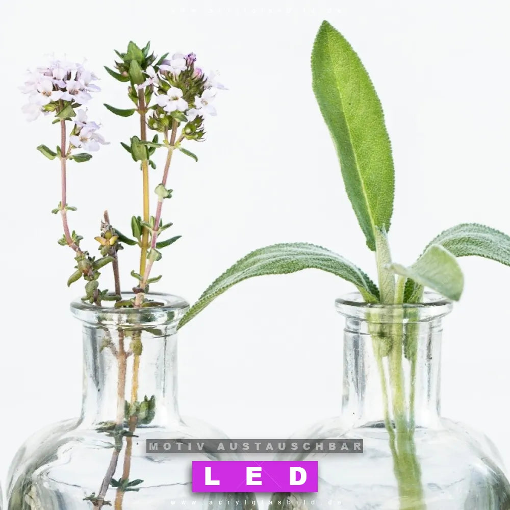 Also, worauf wartest du noch? Gib deinen Wänden den gewissen Wow-Effekt und bestelle jetzt das Canvalight® DIA LED Acrylglasbild Glasflaschen mit Kräutern, um ein echtes Highlight an deine Wand zu zaubern!