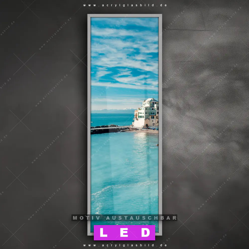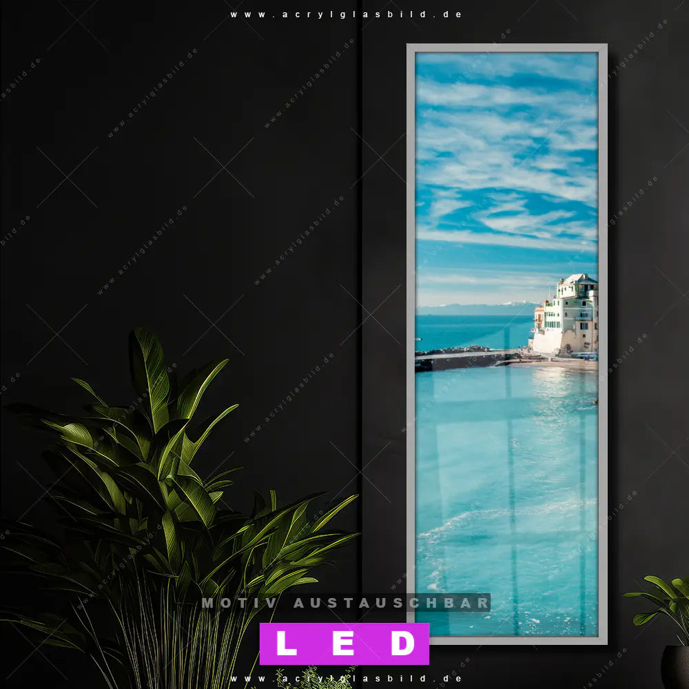 Bist du bereit, deine Wände mit einem dimmbaren LED Bild mit Fernbedienung und optionaler Farbtemperatursteuerung auf das nächste Level zu bringen? Unser Städte - Skylines, Strand - Meer Canvalight® DIA LED Acrylglasbild ist genau das, was du brauchst! Das Wandbild mit LED Beleuchtung im Schmalen Format mit austauschbarer bedruckter Acrylglas-Scheibe Küstenidylle am Meer bringt Licht und Stil in dein Zuhause – und das in null Komma nichts!