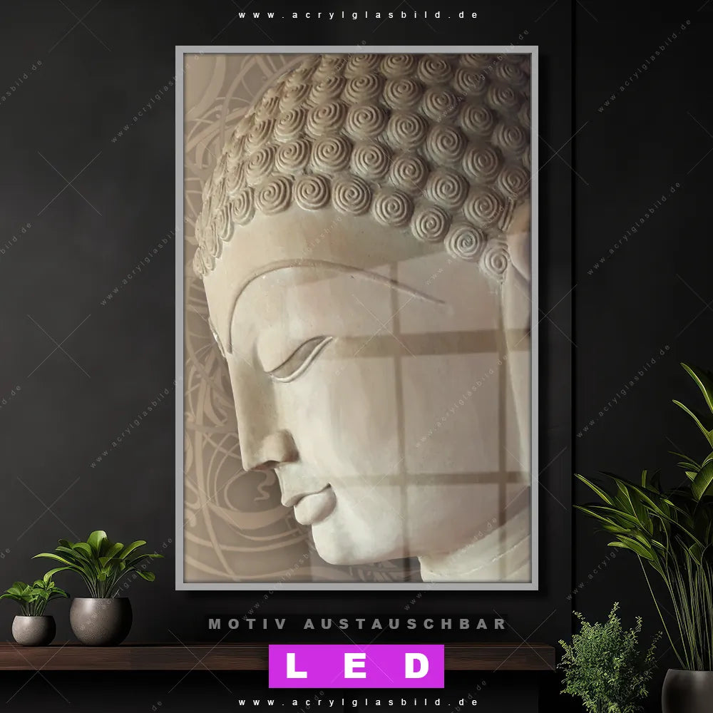 Wer braucht schon langweilige Wände, wenn man sie mit unserem LED Acrylglasbild Canvalight® DIA Buddha in Steinoptik aufpeppen kann? Dank der genialen LED-Ausleuchtung wirst du in Arzt - Praxis, Wohnzimmer - Schlafzimmer, Büro - Kanzlei, Friseur - Beauty nie wieder über deine eigenen Füße stolpern. Wenn du nach einem beleuchteten Wandbild aus Acrylglas mit Buddhismus, Religion, Zen, Meditation, Buddha suchst, dann ist unser LED Acrylglasbild Buddha in Seitenansicht in den hammermäßigen Motiv-Farben Beige, Weiss, Gold genau das richtige LED Bild für dich. Im coolen Modern Art Stil gestaltet, passt das LED Leuchtbild mit DIA-Klapprahmen und glänzender Front aus Acrylglas perfekt zu jedem Einrichtungsstil – sogar zu deinem chaotischen Kreativlabor!