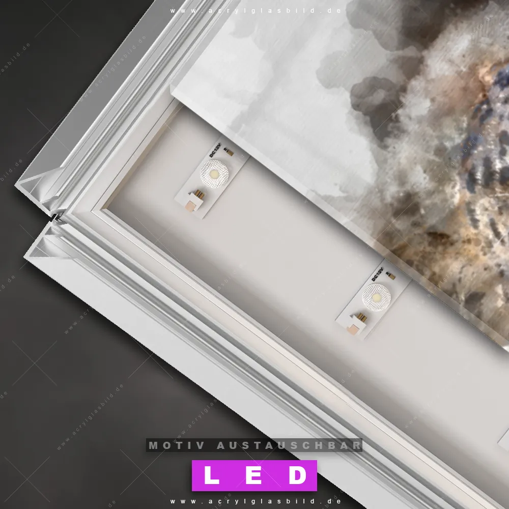 Bist du bereit, deine Wände mit einem dimmbaren LED Bild mit Fernbedienung und optionaler Farbtemperatursteuerung auf das nächste Level zu bringen? Unser Tierwelt Canvalight® DIA LED Acrylglasbild ist genau das, was du brauchst! Das Wandbild mit LED Beleuchtung im Schmalen Format mit austauschbarer bedruckter Acrylglas-Scheibe Leopard Aquarell bringt Licht und Stil in dein Zuhause – und das in null Komma nichts!