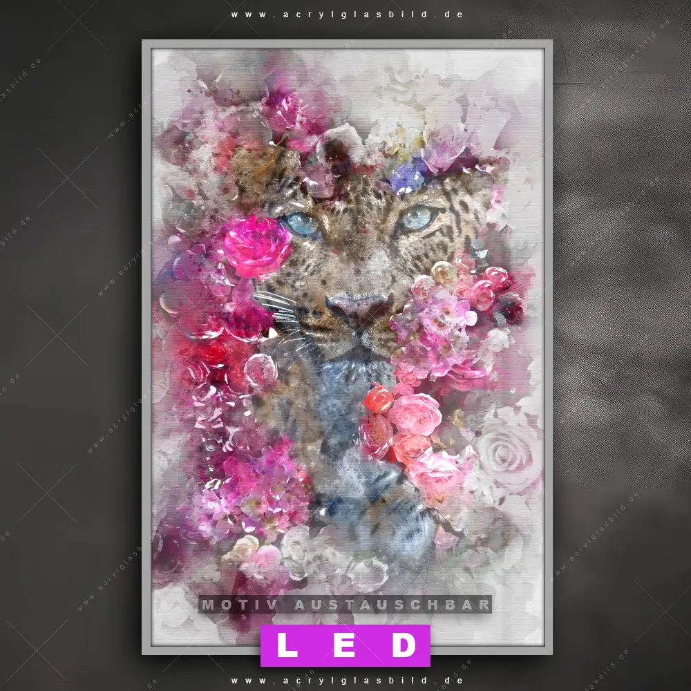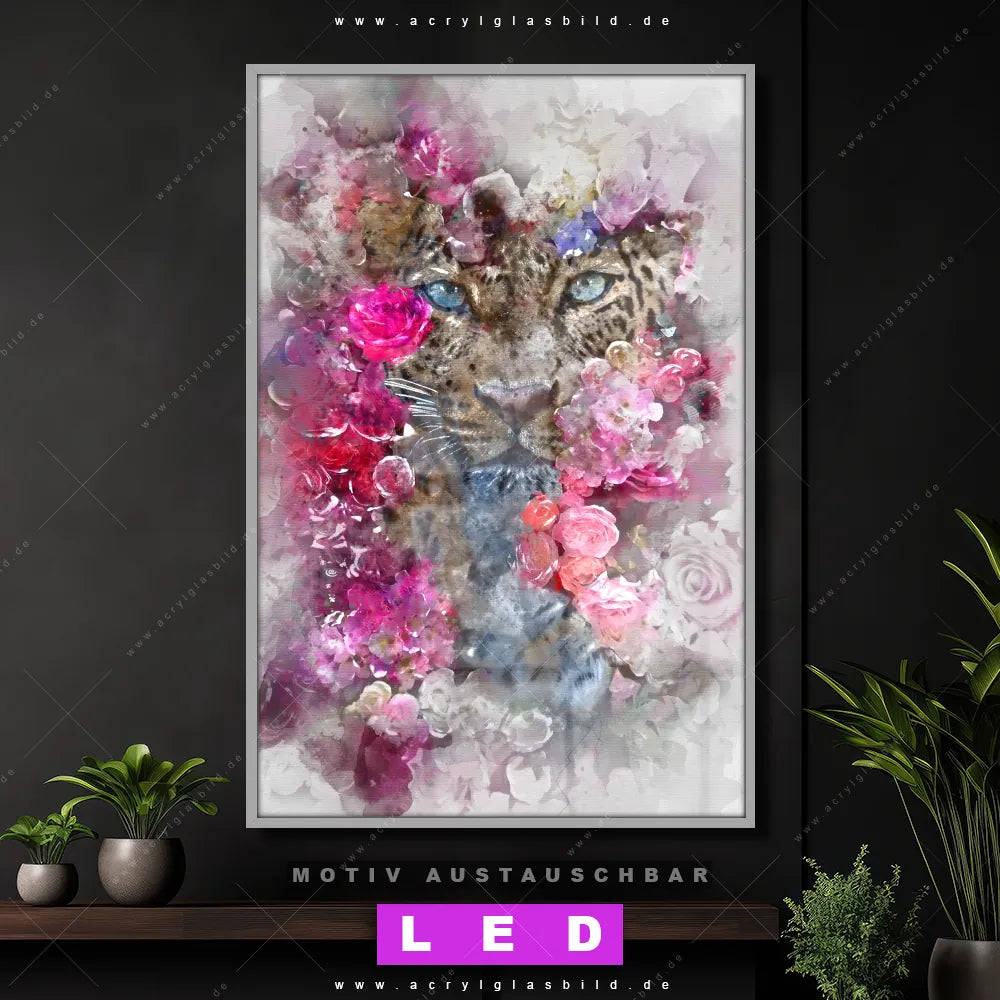 Du suchst nach einem Wandbild mit LED Beleuchtung als ultimativen Hingucker für deine Wände? Dann haben wir das perfekte dimmbare LED Bild mit Fernbedienung und optionaler Farbtemperatursteuerung für dich: unser abgefahrenes Tierwelt, Blumen - Botanik Canvalight® DIA LED Acrylglasbild! Mit dem LED Leuchtbild aus Acrylglas Leopard & Blumen im Hochformat mit austauschbarer bedruckter Acrylglas-Scheibe bringst du nicht nur Licht, sondern auch ordentlich Stil in deine Bude.