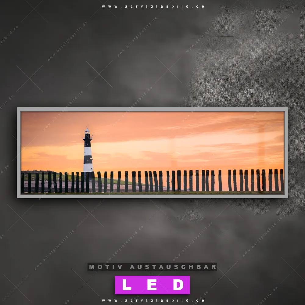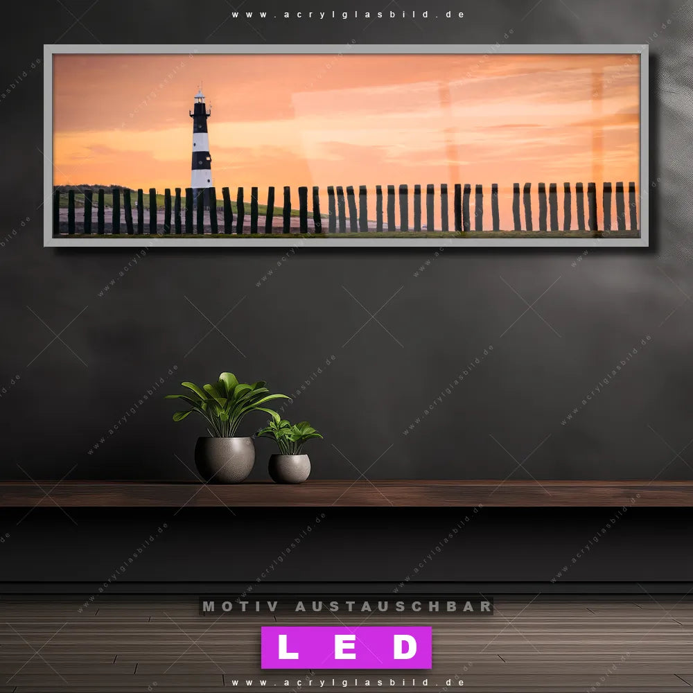 LED Acrylglasbild Canvalight® DIA | Leuchtturm bei Sonnenuntergang | Panorama