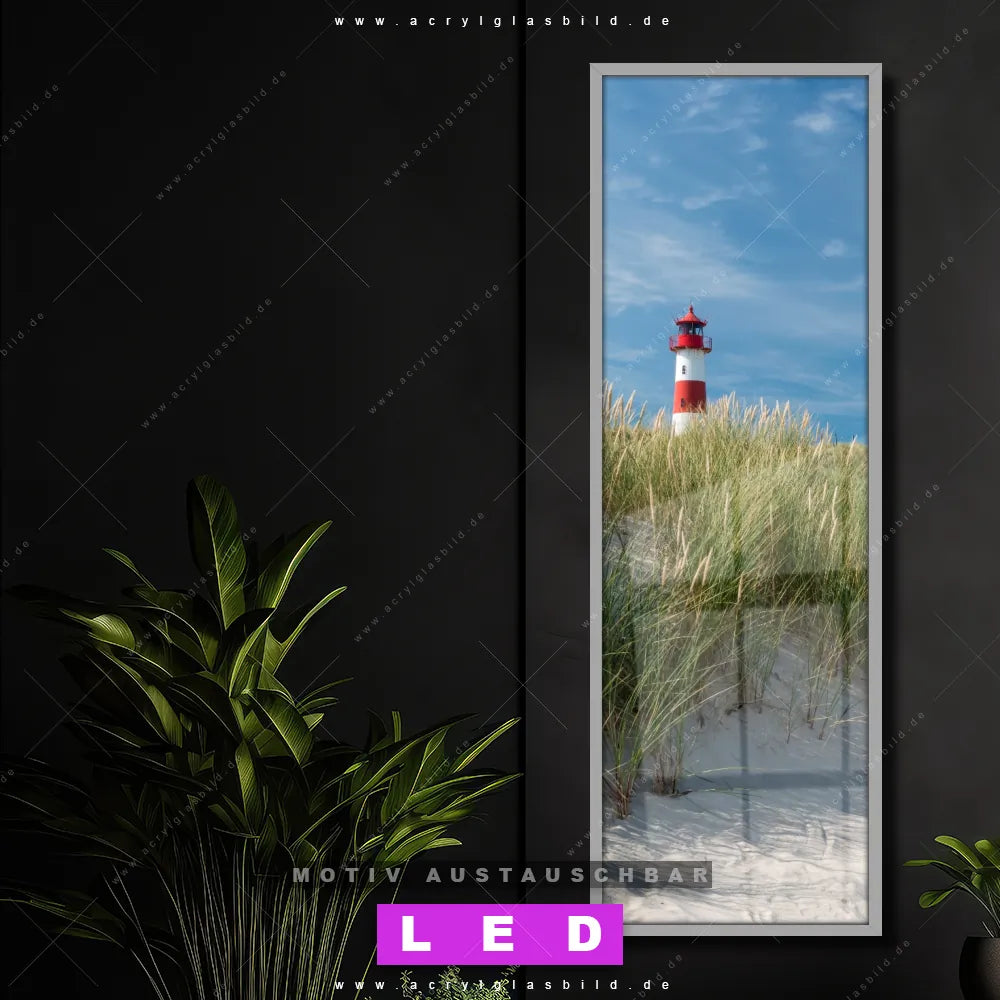 Bist du bereit, deine Wände mit einem dimmbaren LED Bild mit Fernbedienung und optionaler Farbtemperatursteuerung auf das nächste Level zu bringen? Unser Landschaften, Strand - Meer Canvalight® DIA LED Acrylglasbild ist genau das, was du brauchst! Das Wandbild mit LED Beleuchtung im Schmalen Format mit austauschbarer bedruckter Acrylglas-Scheibe Leuchtturm No. 1 bringt Licht und Stil in dein Zuhause – und das in null Komma nichts!
