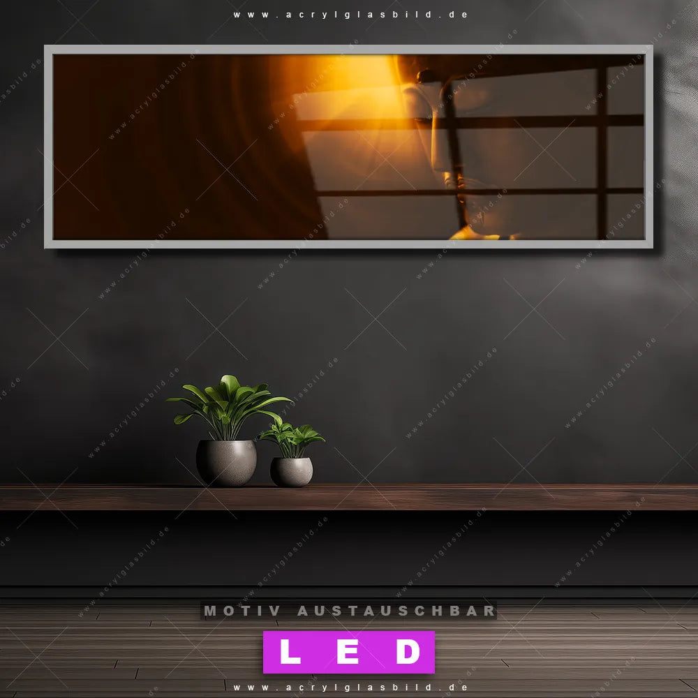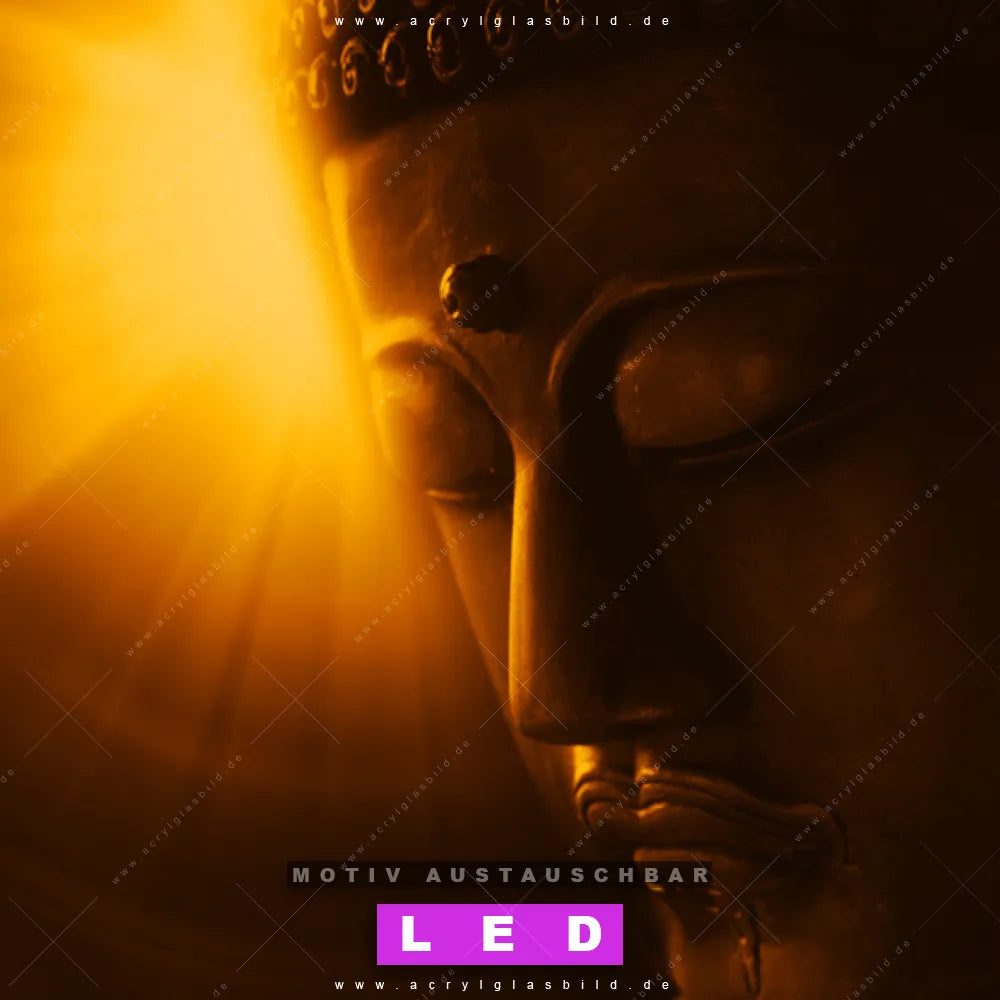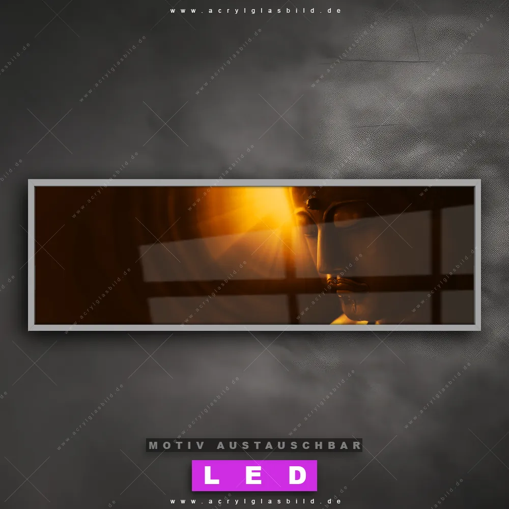 Deine Wände könnten dringend ein dimmbares LED Bild mit Fernbedienung und optionaler Farbtemperatursteuerung gebrauchen? Dann haben wir das perfekte Wandbild mit LED Beleuchtung für dich: unser mega-cooles Buddha - Feng Shui Canvalight® DIA LED Acrylglasbild! Mit unserem angesagten Leuchtbild aus Acrylglas im Panorama-Format und der austauschbaren bedruckten Acrylglas-Scheibe Licht der Weisheit bringst du nicht nur Licht, sondern auch jede Menge Flair in deine Räume.