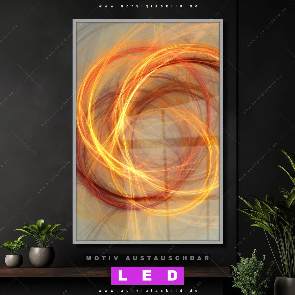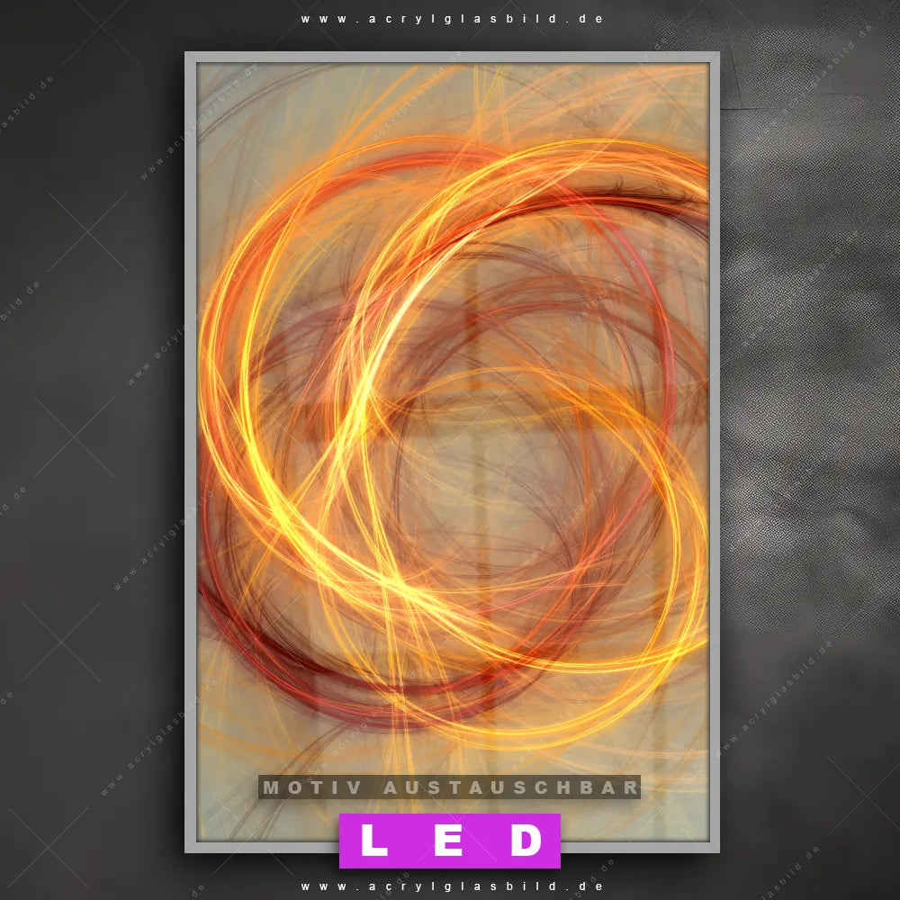 Wer braucht schon langweilige Wände, wenn man sie mit unserem LED Acrylglasbild Canvalight® DIA Lichtspiel aufpeppen kann? Dank der genialen LED-Ausleuchtung wirst du in Arzt - Praxis, Büro - Kanzlei, Wohnzimmer - Schlafzimmer, Bar - Gastronomie, Friseur - Beauty nie wieder über deine eigenen Füße stolpern. Wenn du nach einem beleuchteten Wandbild aus Acrylglas mit dynamisch, Grafik, Fraktal, digital, kreativ, Kunst, Kreis, Licht, Lichtmalerei suchst, dann ist unser LED Acrylglasbild Lichterkreise in den hammermäßigen Motiv-Farben Orange, Gold, Beige genau das richtige LED Bild für dich. Im coolen Abstrakt, Modern Art, Geometrisch Stil gestaltet, passt das LED Leuchtbild mit DIA-Klapprahmen und glänzender Front aus Acrylglas perfekt zu jedem Einrichtungsstil – sogar zu deinem chaotischen Kreativlabor!