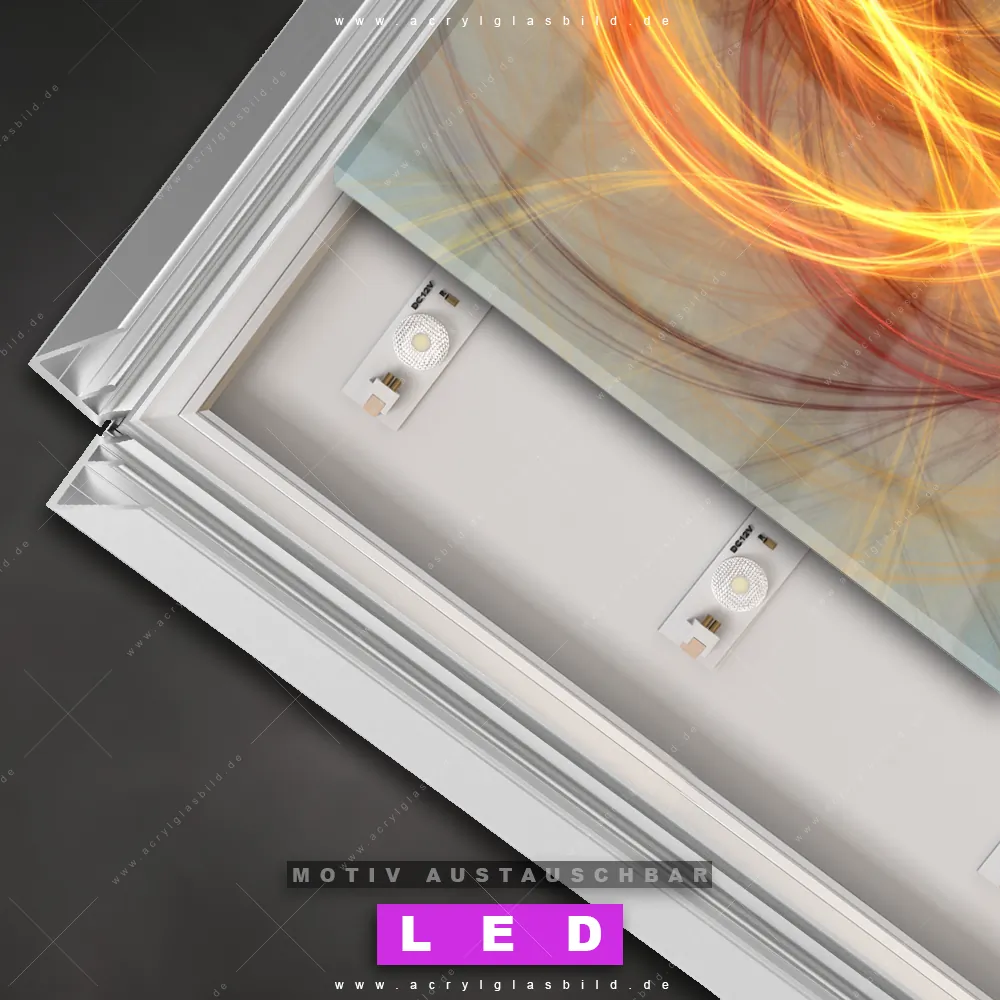 Du bist auf der Suche nach einem dimmbaren Muster - Texturen LED Bild mit Fernbedienung und optionaler Farbtemperatursteuerung? Dann haben wir hier genau das richtige Wandbild mit LED Beleuchtung für dich: Unser Canvalight® DIA LED Acrylglasbild Lichtmalerei No. 1 im Querformat mit austauschbarer bedruckter Acrylglas-Scheibe. Dieses Leuchtbild bringt sofort Partybeleuchtung in deine Räume!