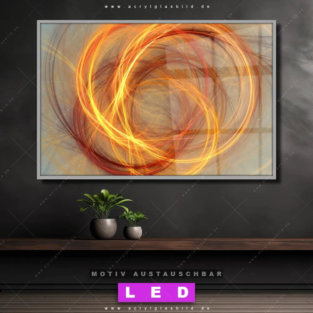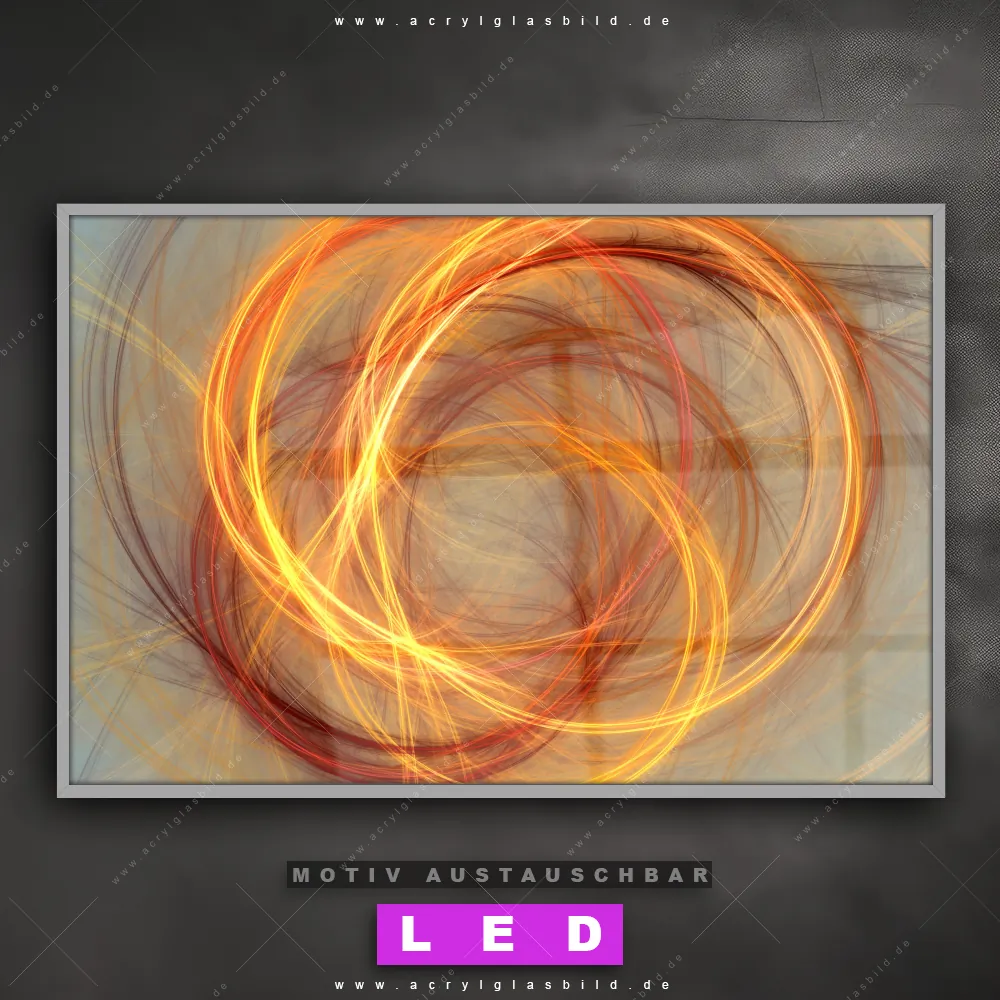 Mit unserem LED Acrylglasbild Canvalight® DIA Lichtspiel und seiner genialen LED-Ausleuchtung wirst du nie wieder im Dunkeln auf deinem Sofa herumtappen. Wenn du nach einem beleuchteten Wandbild aus Acrylglas mit dynamisch, Grafik, Fraktal, digital, kreativ, Kunst, Kreis, Licht, Lichtmalerei für Arzt - Praxis, Büro - Kanzlei, Wohnzimmer - Schlafzimmer, Bar - Gastronomie, Friseur - Beauty suchst, ist unser LED Leuchtbild Lichterkreise in den beeindruckenden Motiv-Farben Orange, Gold, Beige genau das richtige beleuchtete Wandbild für dich. Gestaltet im Abstrakt, Modern Art, Geometrisch Stil, passt dieses LED Wandbild mit DIA-Klapprahmen und glänzender Front aus Acrylglas perfekt zu jedem Einrichtungsstil – sogar zu deinem chaotischen kreativen Durcheinander!