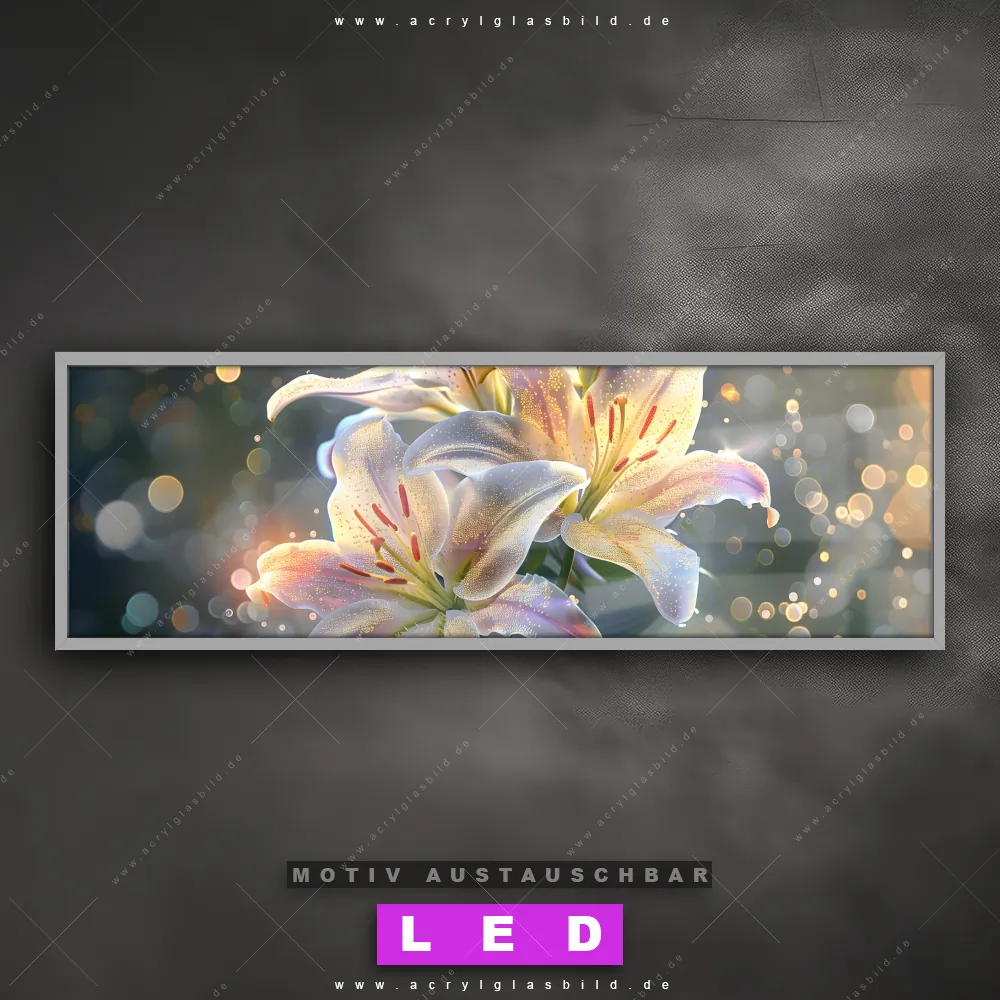 Deine Wände könnten dringend ein dimmbares LED Bild mit Fernbedienung und optionaler Farbtemperatursteuerung gebrauchen? Dann haben wir das perfekte Wandbild mit LED Beleuchtung für dich: unser mega-cooles Blumen - Botanik Canvalight® DIA LED Acrylglasbild! Mit unserem angesagten Leuchtbild aus Acrylglas im Panorama-Format und der austauschbaren bedruckten Acrylglas-Scheibe Lilien im Morgenlicht bringst du nicht nur Licht, sondern auch jede Menge Flair in deine Räume.