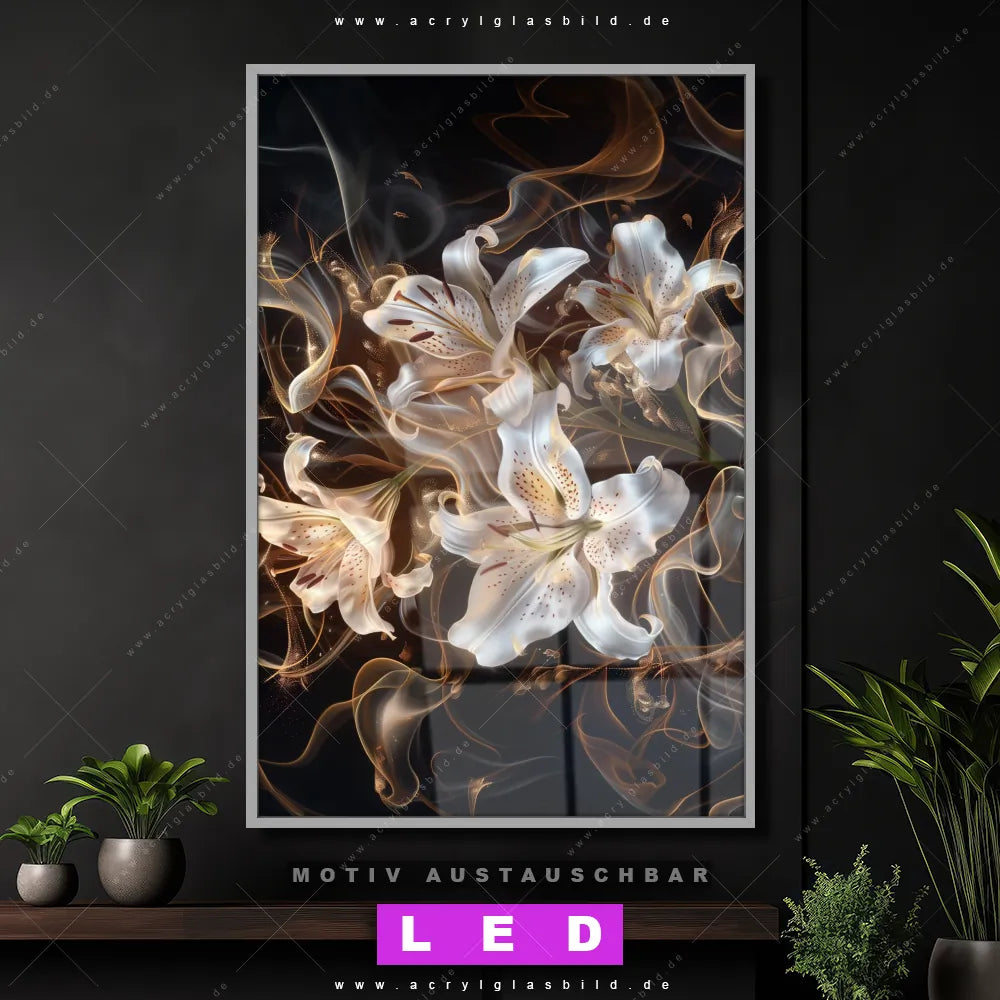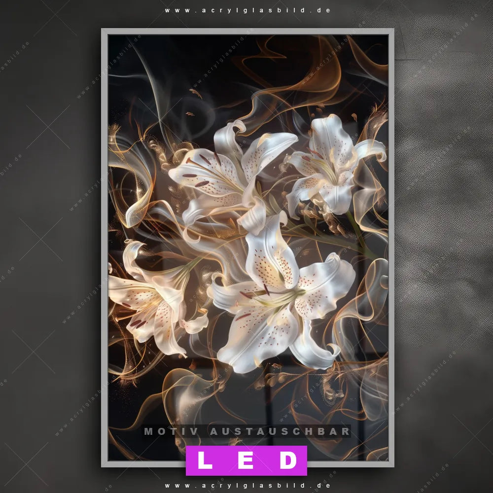 LED Acrylglasbild Canvalight® DIA | Lilien in goldenem Rauch | Hochformat
