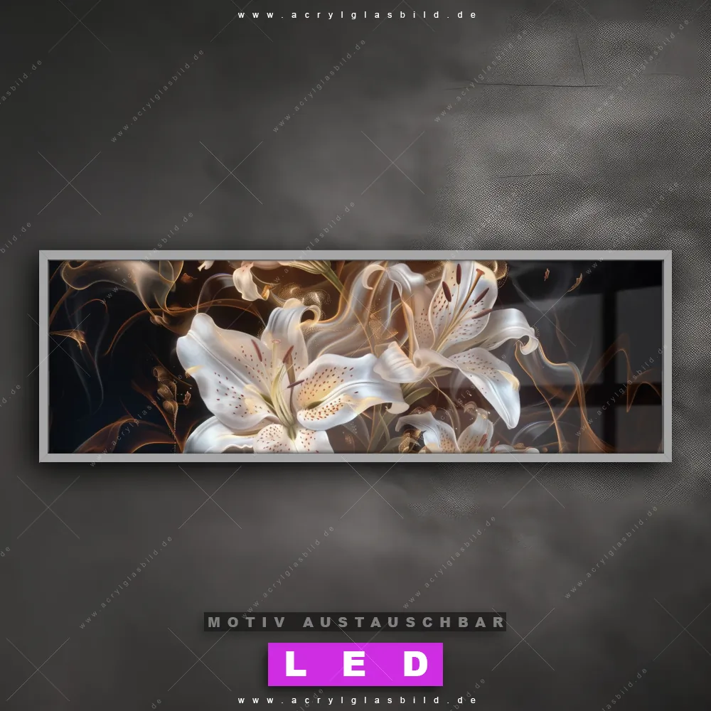 LED Acrylglasbild Canvalight® DIA | Lilien in goldenem Rauch | Panorama