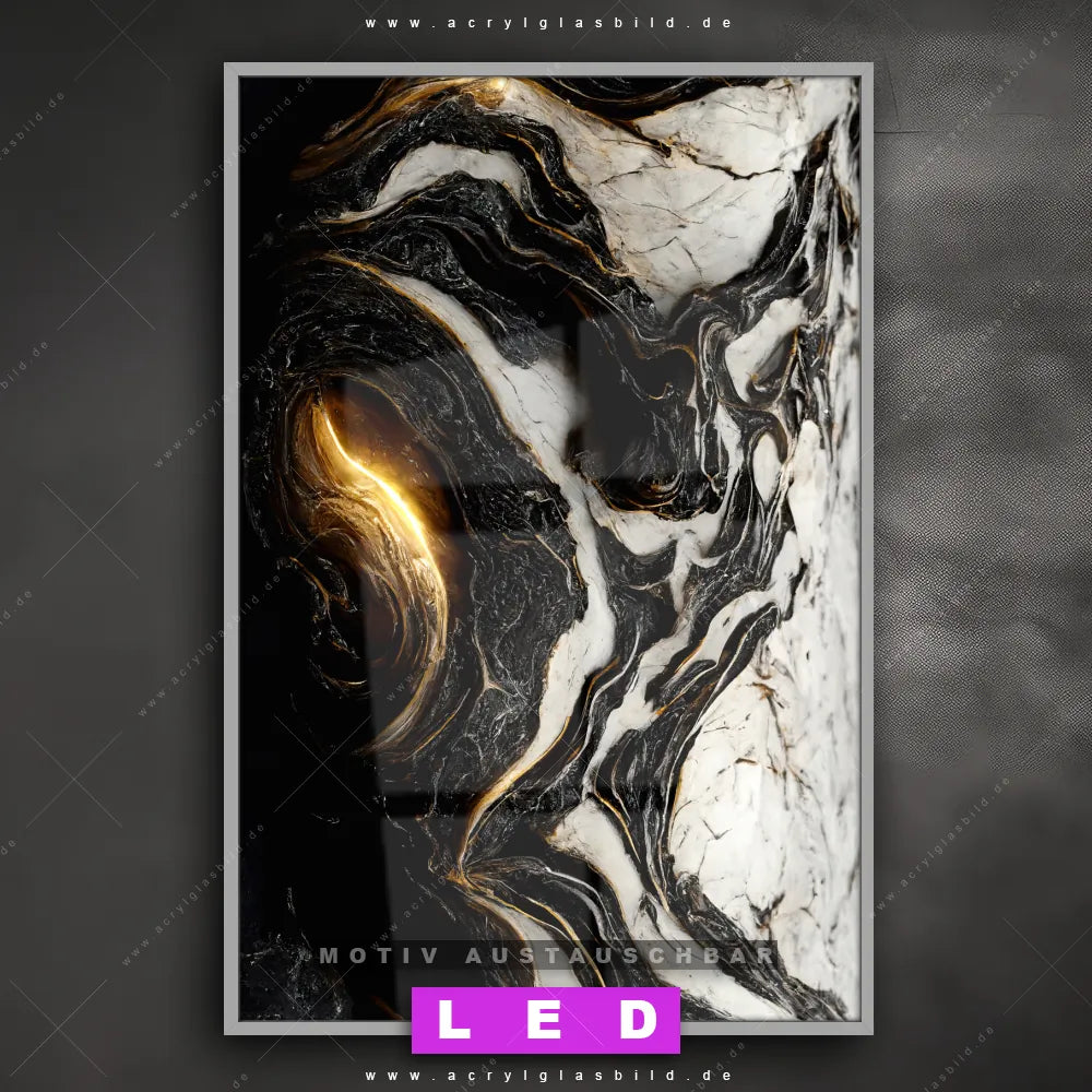 LED Acrylglasbild Canvalight® DIA | Liquid Marmor Schwarz Gold | Hochformat