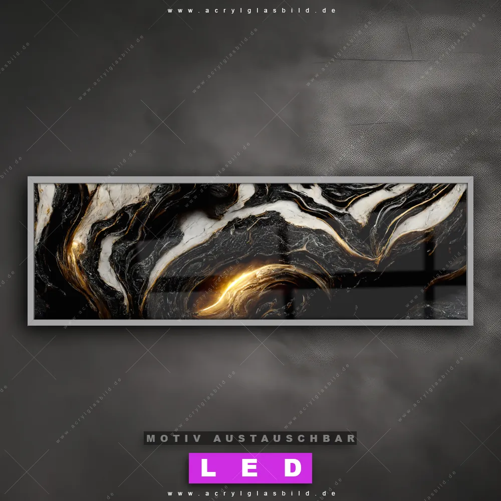 LED Acrylglasbild Canvalight® DIA | Liquid Marmor Schwarz Gold | Panorama