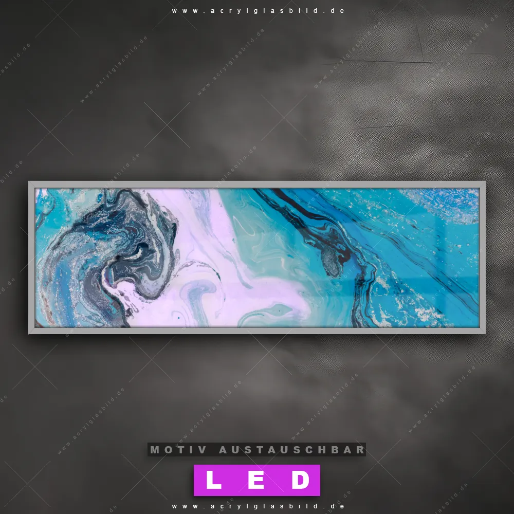 LED Acrylglasbild Canvalight® DIA | Liquid Marmor Türkis Flieder | Panorama