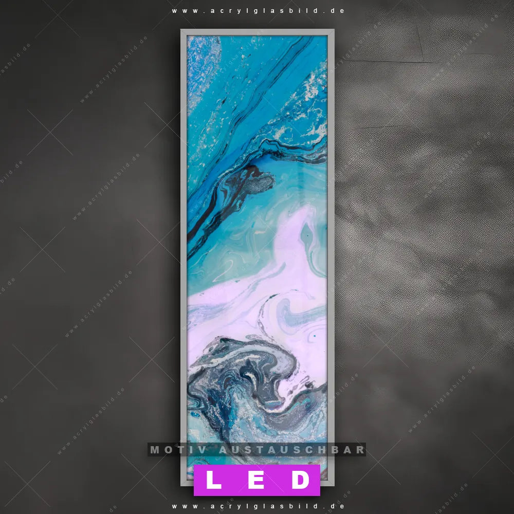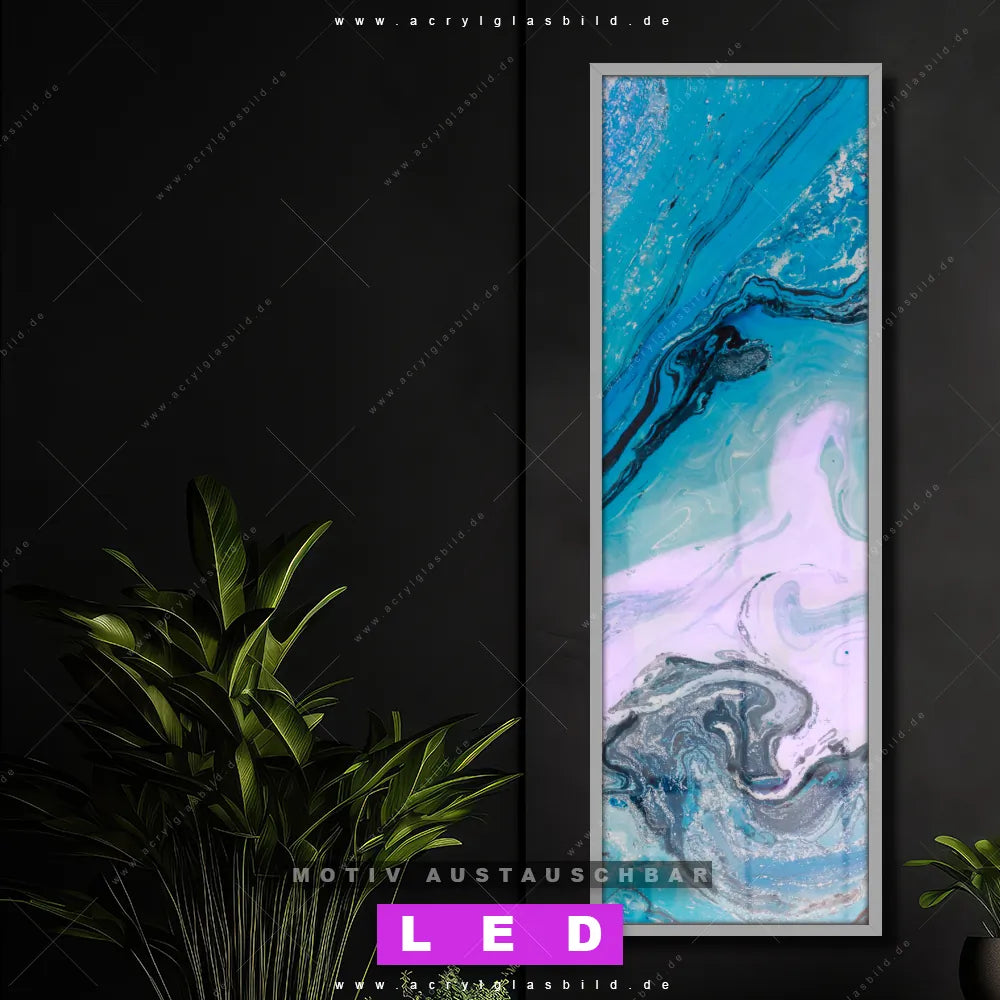 LED Acrylglasbild Canvalight® DIA | Liquid Marmor Türkis Flieder | Schmal