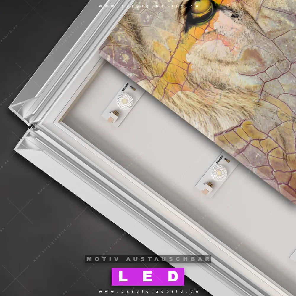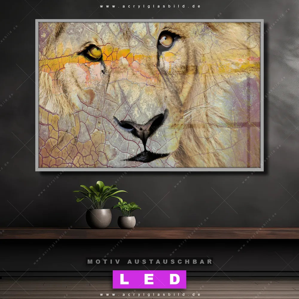 Du bist auf der Suche nach einem dimmbaren Tierwelt LED Bild mit Fernbedienung und optionaler Farbtemperatursteuerung? Dann haben wir hier genau das richtige Wandbild mit LED Beleuchtung für dich: Unser Canvalight® DIA LED Acrylglasbild Löwe im Querformat mit austauschbarer bedruckter Acrylglas-Scheibe. Dieses Leuchtbild bringt sofort Partybeleuchtung in deine Räume!