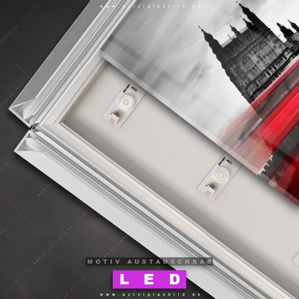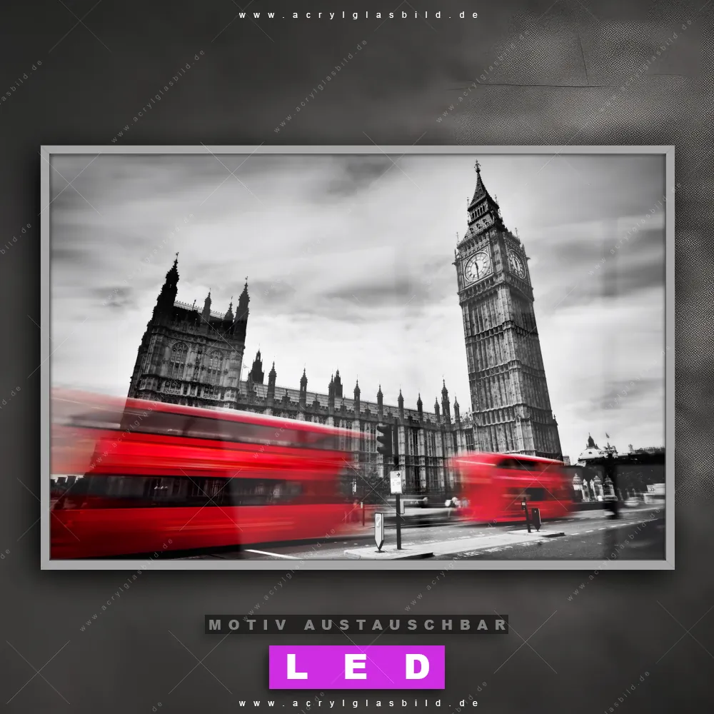 Du bist auf der Suche nach einem dimmbaren Städte - Skylines LED Bild mit Fernbedienung und optionaler Farbtemperatursteuerung? Dann haben wir hier genau das richtige Wandbild mit LED Beleuchtung für dich: Unser Canvalight® DIA LED Acrylglasbild London in Bewegung im Querformat mit austauschbarer bedruckter Acrylglas-Scheibe. Dieses Leuchtbild bringt sofort Partybeleuchtung in deine Räume!