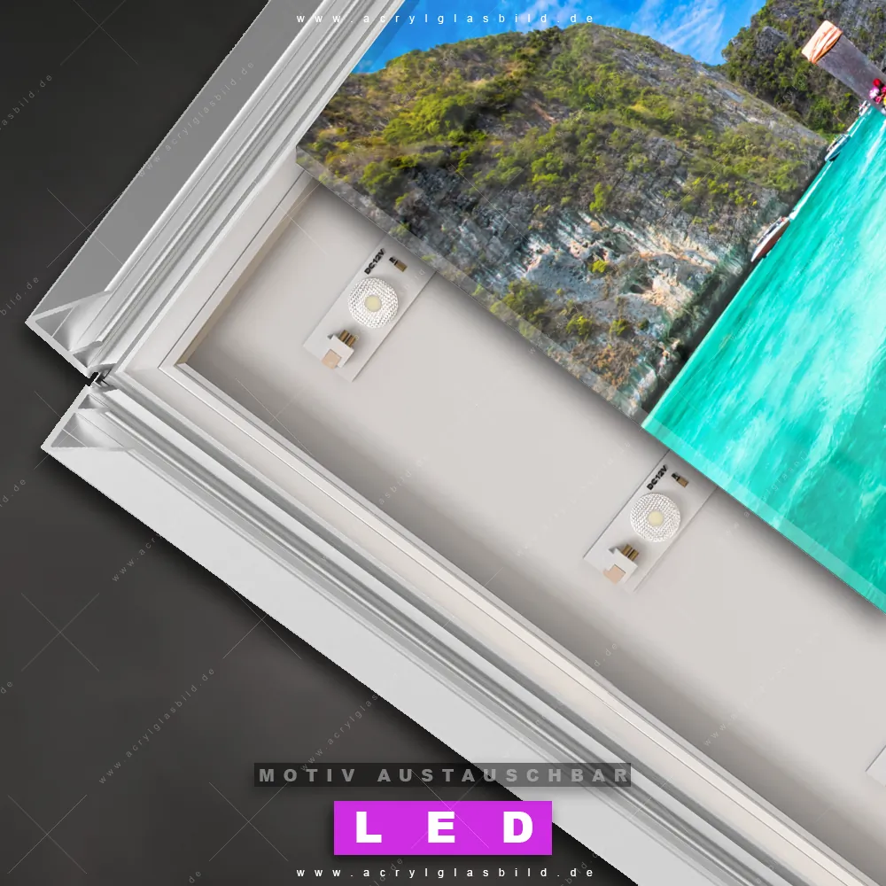 Also, worauf wartest du noch? Gib mit einem beleuchteten Wandbild mit wechselbarer Acrylglas-Scheibe deinen Wänden das gewisse Etwas und bestelle jetzt das LED Acrylglasbild Canvalight® DIA Thailändisches Boot – dein Zuhause wird es dir danken und deine Freunde werden dank der wechselbaren Motive erblassen!
