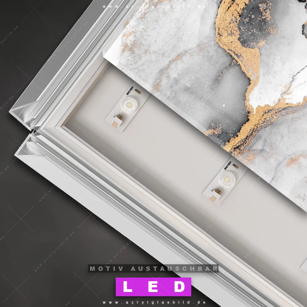 Also, worauf wartest du noch? Gib mit einem beleuchteten Wandbild mit wechselbarer Acrylglas-Scheibe deinen Wänden das gewisse Etwas und bestelle jetzt das LED Acrylglasbild Canvalight® DIA Fluid Painting edel – dein Zuhause wird es dir danken und deine Freunde werden dank der wechselbaren Motive erblassen!