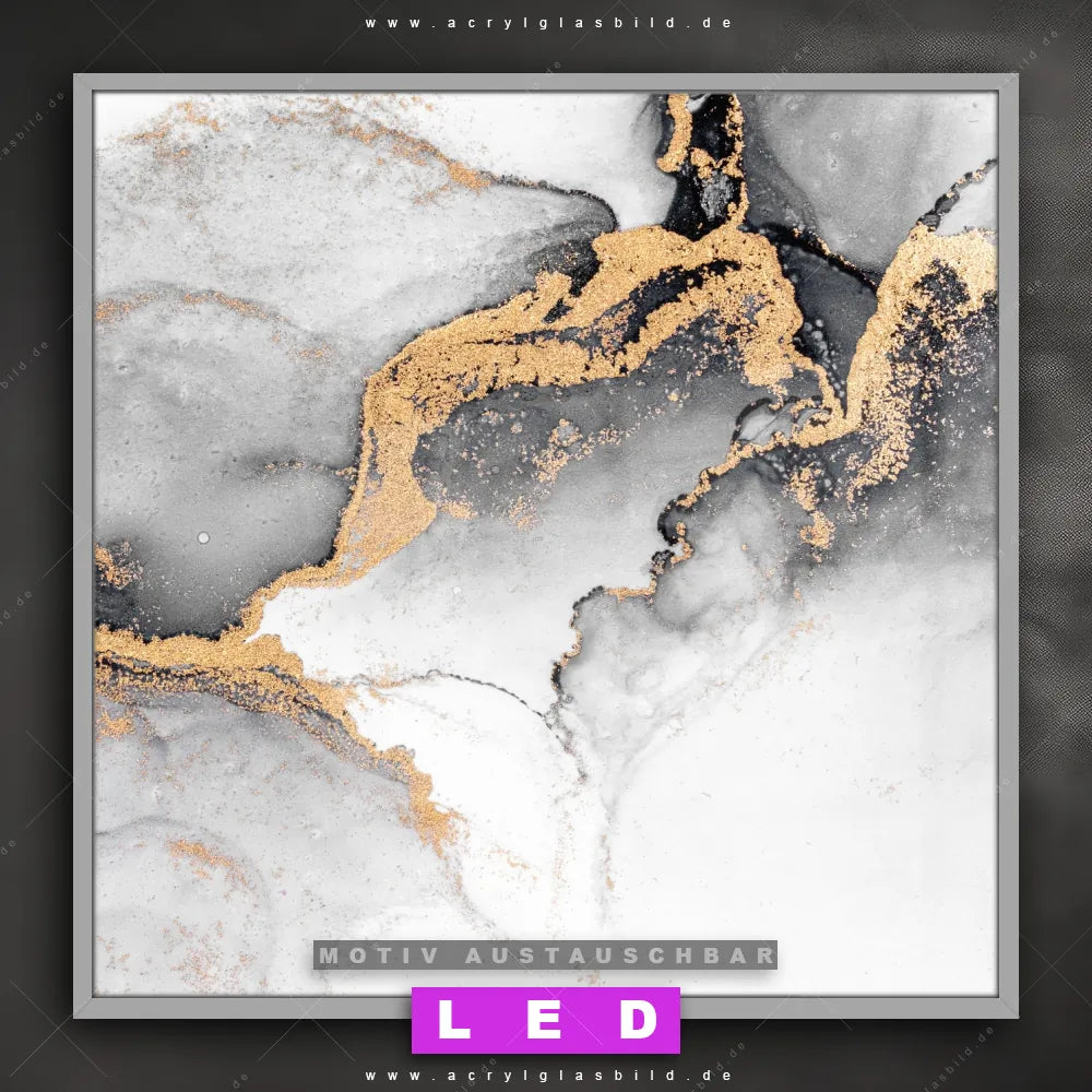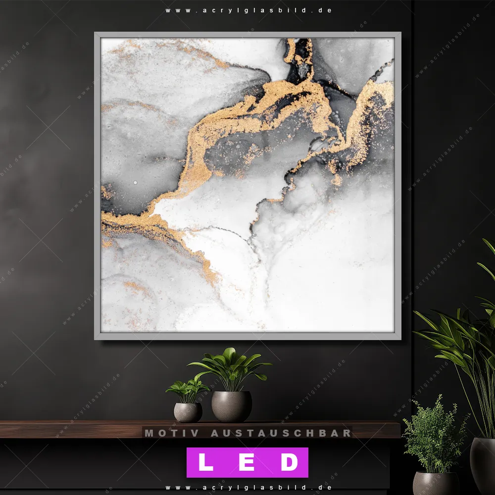 Bist du bereit, deine Wände mit einem dimmbaren LED Bild mit Fernbedienung und optionaler Farbtemperatursteuerung zum Leuchten zu bringen? Wir haben das ultimative Muster - Texturen LED Acrylglasbild Canvalight® DIA für dich! Unser LED Wandbild aus Acrylglas Luxury Abstract Fluid Art No. 3 im Quadratischen Format mit austauschbarer bedruckter Acrylglas-Scheibe im DIA-Klapprahmen bringt sofort jede Menge Glanz in deine vier Wände.